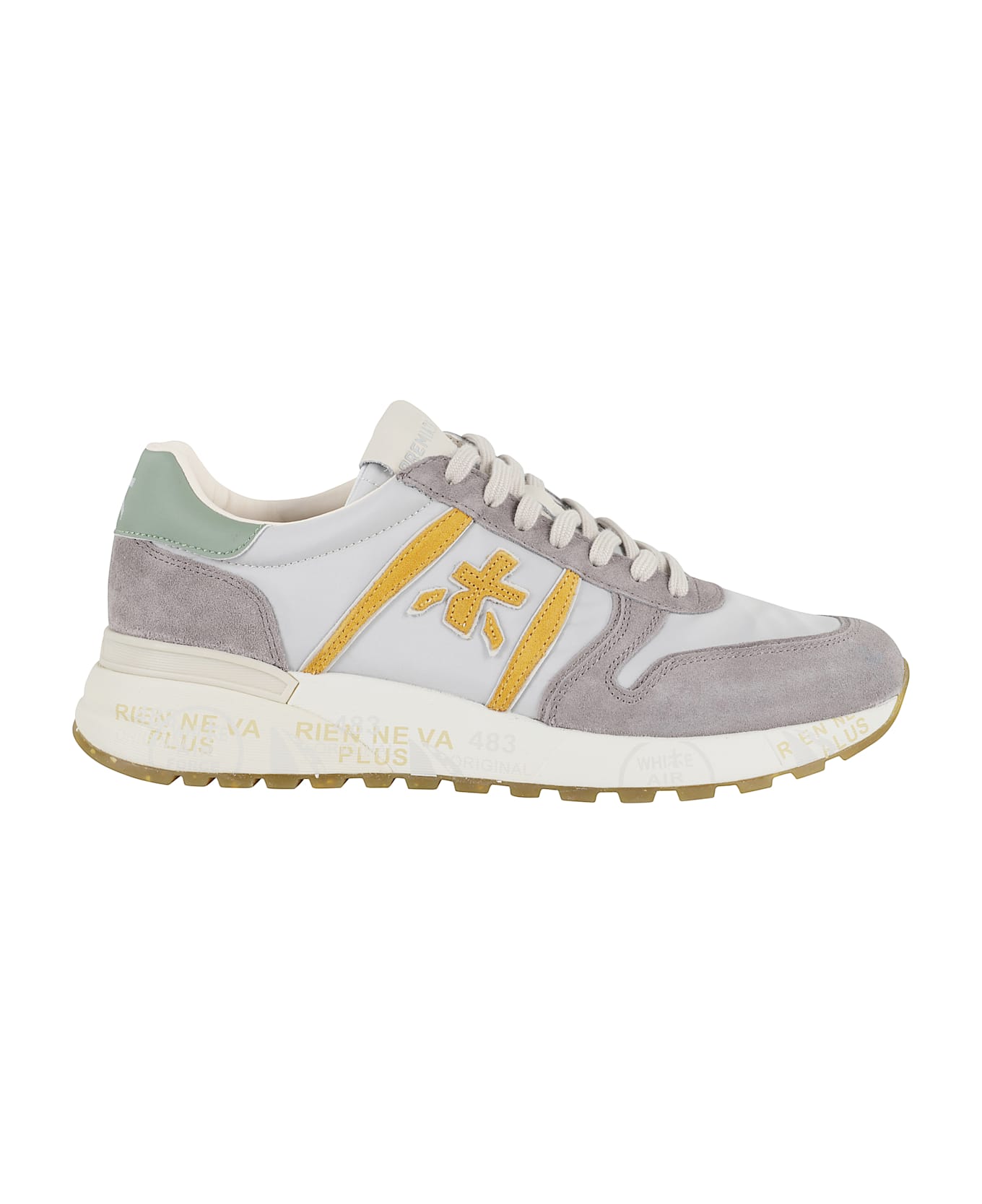 Lander sneakers - Premiata - Grey color - Nylon and suede upper - Round toe - Contrasting logo-printed heel - Logo-embossed tongue - Lace-up closure - Rubber sole