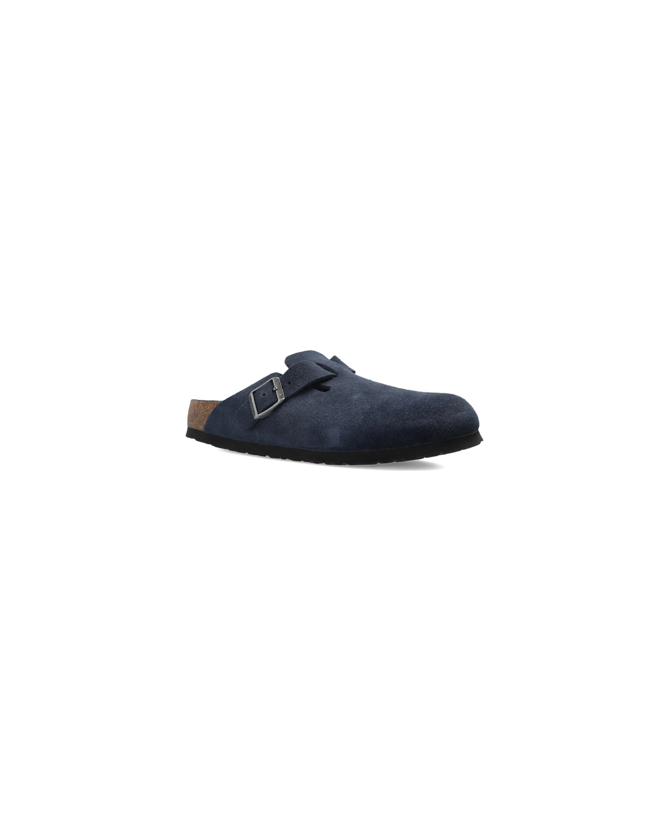 navy blue buckle-strap cork footbed suede upper round toe tonal stitching