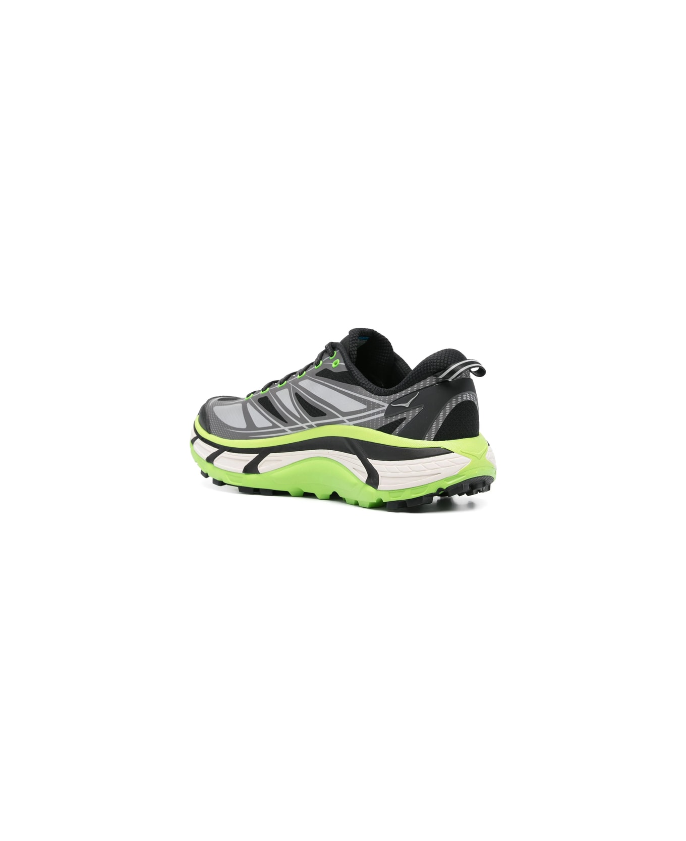 black front lace-up fastening chunky rubber sole pull-tab at the heel colour-block panelled design