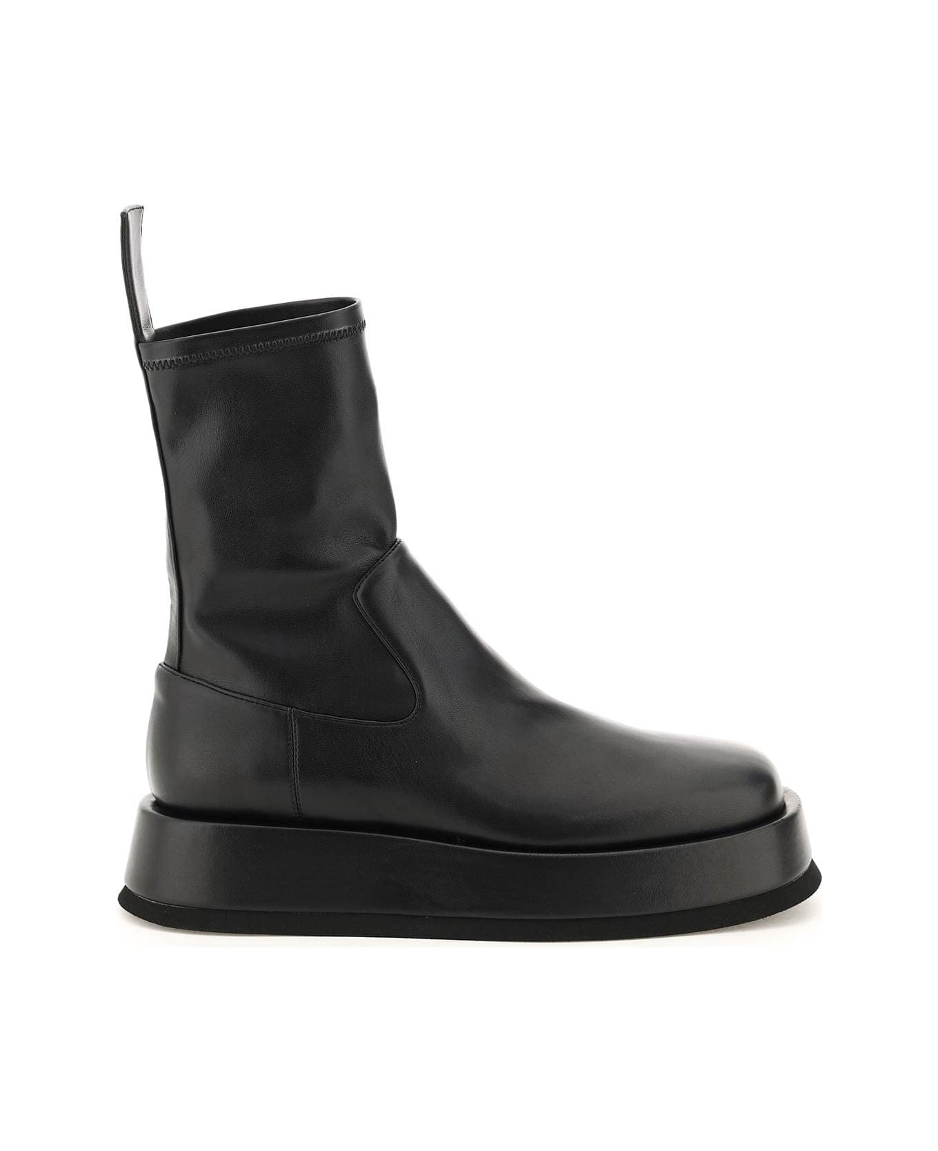 Rosie 11 ankle boots by GIA/RHW crafted in eco-leather with sock-effect stretch insert on the ankle. Pull-on construction with rear tab, squared toe and leather-coated flatform sole. Fabric and leather interior, rubber tread.