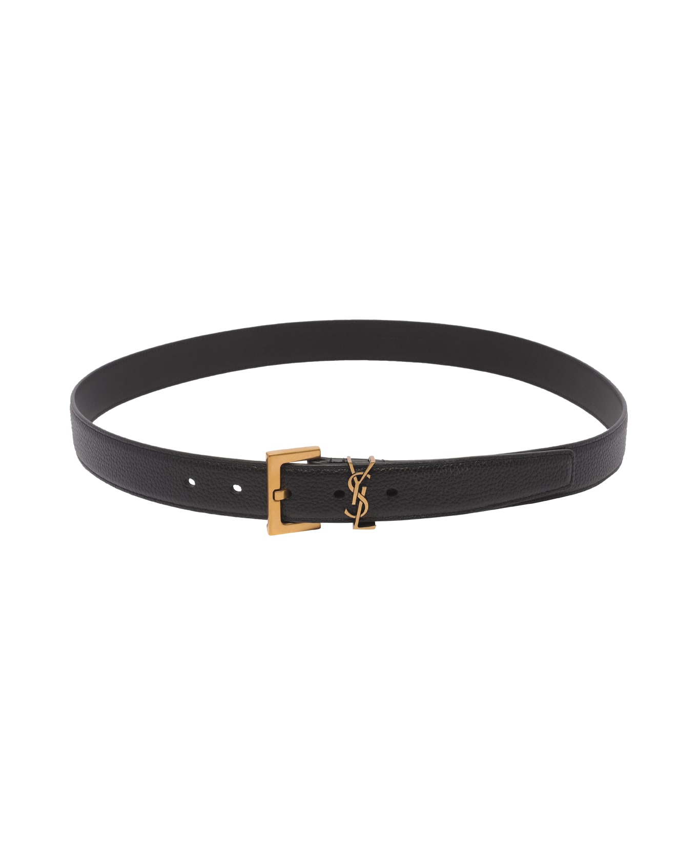 Saint Laurent black Cassandre belt, YSL logo with golden details Composition: 100% Calf Leather