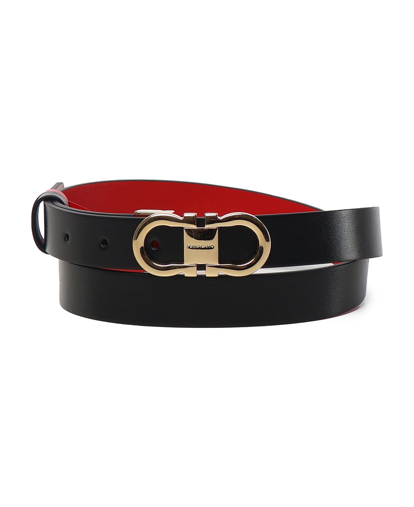 -Smooth calf leather belt -Reversible structure -Adjustable length -Two-tone design -Gold-finish Gancini buckle -Height: 2. 5 cm -Made in Italy -Color: Black, Red Composition: 100% Calfskin