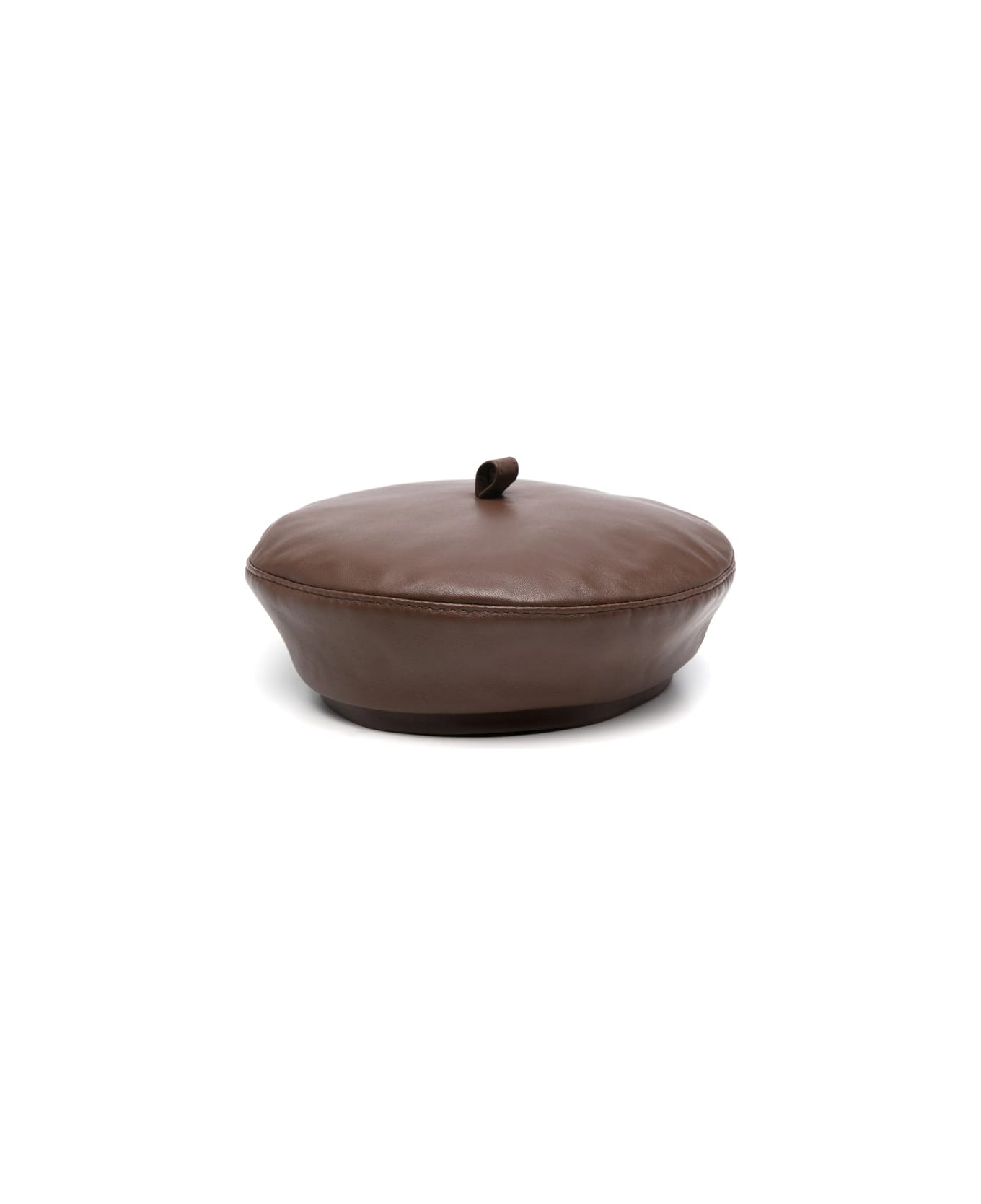 chocolate brown leather brushed finish pull-on style single loop flat crown cotton lining