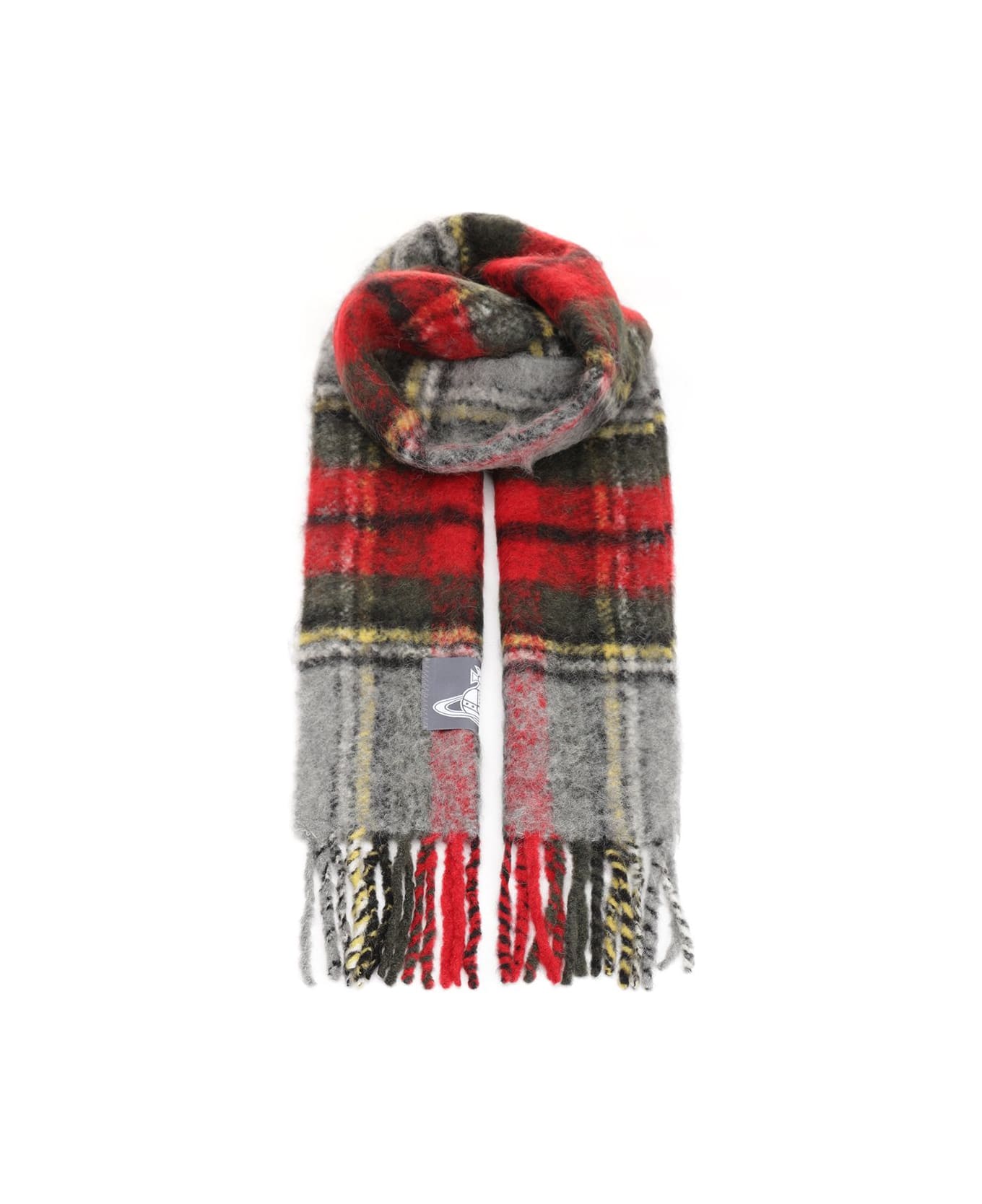 Vivienne Westwood tartan wool scarf with fringes and an Orb label. Composition: 70% Alpaca 10% Wool 20% Polyamide