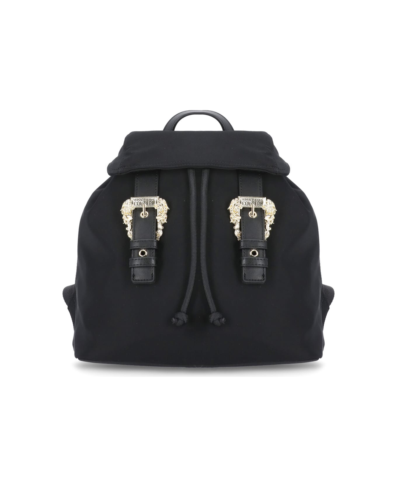 - Black Versace Jeans Couture backpack for woman - One handle - Two regolable shoulder straps with logo - One intermal welt pocket - One internal pocket with zip fastening - One main compartment with drawstrings - Front contrasting color buckles detail - Front flat and magnetic buttons fastening Composition: 100% Polyamide Lining:, 100% Polyester