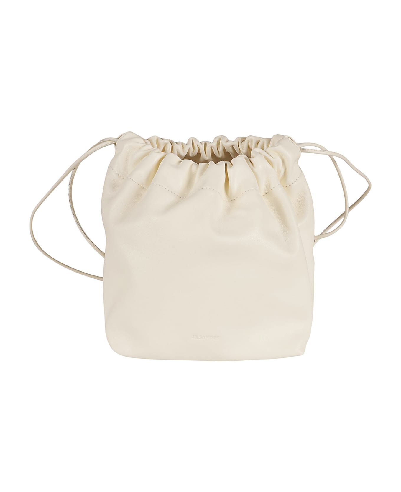 drawstring-fastening shoulder bag from JIL SANDER featuring white, calf leather, drawstring fastening, adjustable shoulder straps and main compartment.
