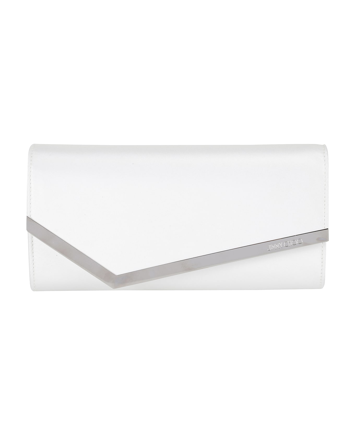 Emmie Sat bag - Jimmy Choo - Ivory color - Made of satin fabric - Single compartment with inside pockets - Removable chain shoulder strap - Magnetic closure - Size: 22 x 12 x 3 cm.