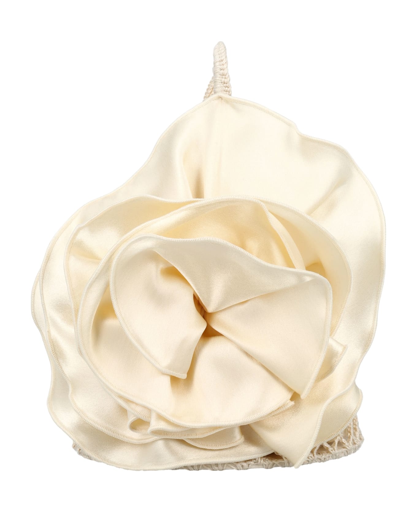 Small Devana Bag By Magda Butrym. Featuring: Small Tote Bag Made From Large Netted Crochet Large Satin Flower At Front Leather Bottom Main Compartment Height: 22,5cm Width: 14cm Depth: 14cm