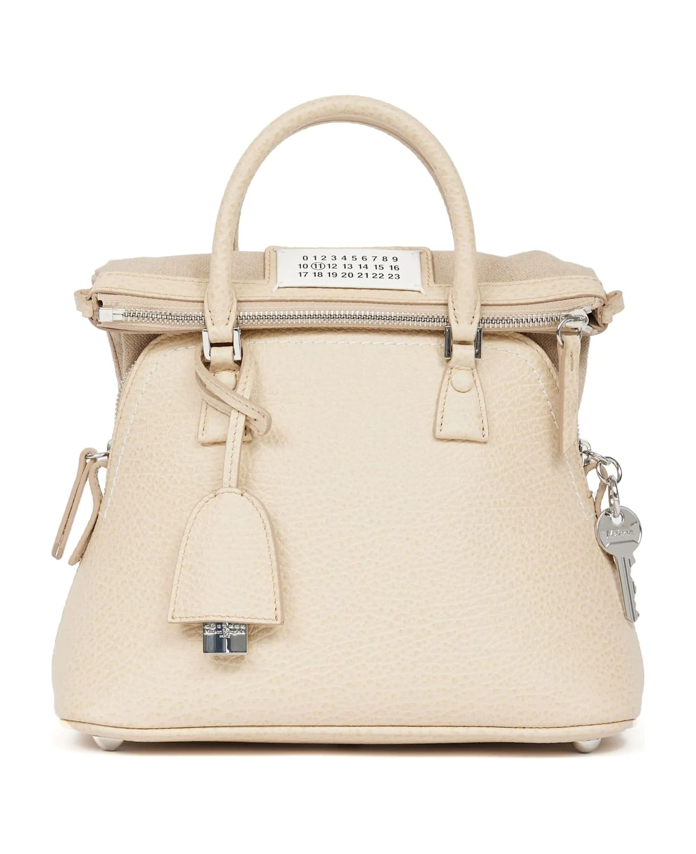 Ecru mini 5AC Classique tote bag, leather, grained texture, two-way zip fastening, padlock fastening, two rolled top handles, adjustable detachable shoulder strap, foldover top, appliqué logo, set of keys, signature four-stitch logo, metal feet, main compartment, internal zip-fastening pocket, internal slip pocket, internal logo stamp, STRAP 48 cm, DEPTH 131 cm, HANDLE 10 cm, WIDTH 25 cm, HEIGHT 18 cm