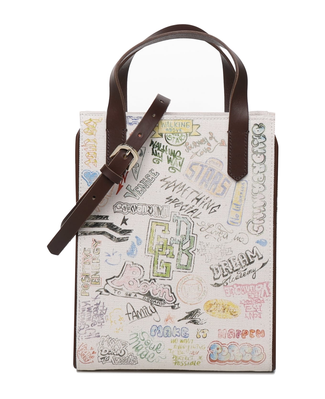 White/multicolor Mini California Bag from Golden Goose -All-over contrasting black silk-screen print -Leather piping and handles -Internal pocket with zip -Measurements: 20x25x7 cm -Made in Italy -Colour: White -90% cotton, 10% cowskin