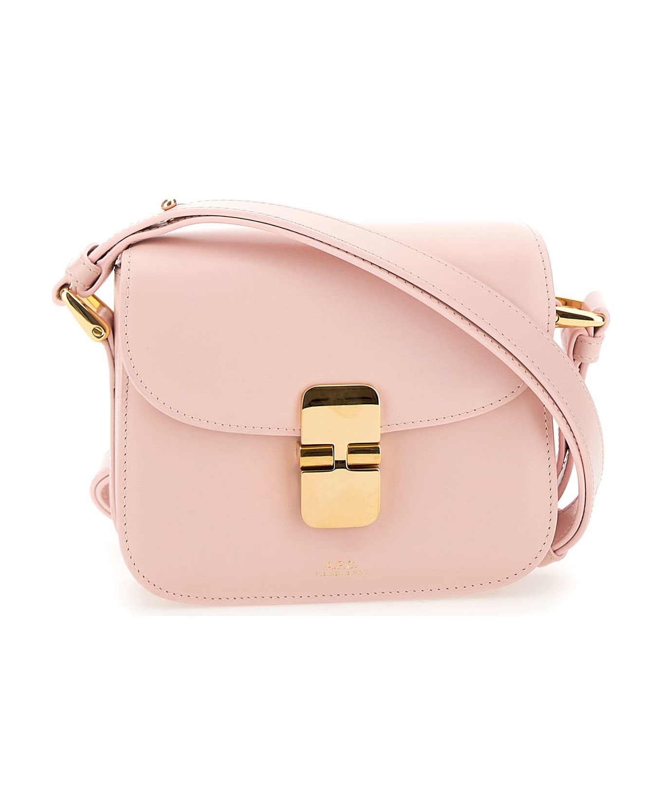 Smooth leather Shoulder bag A. P. C "Grace Mini", pastel pink, fastening with goldtone hardware,flap lined suede split cowhide, three compartments gold embossed 'APC Rue Madame Paris' logo on front, adjustable shoulder strap. Measurements: 21 x 17 x 5cm.