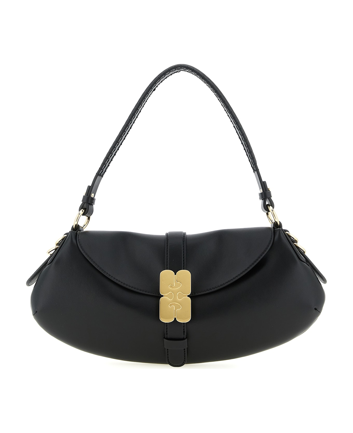 B-Kat shoulder bag in leather-effect fabric with curved silhouette, magnetic flap closure with metal 'GANNI Butterfly' logo on the front, and removable handle. Composition: 51% lh 30% polyester 19% polyurethane