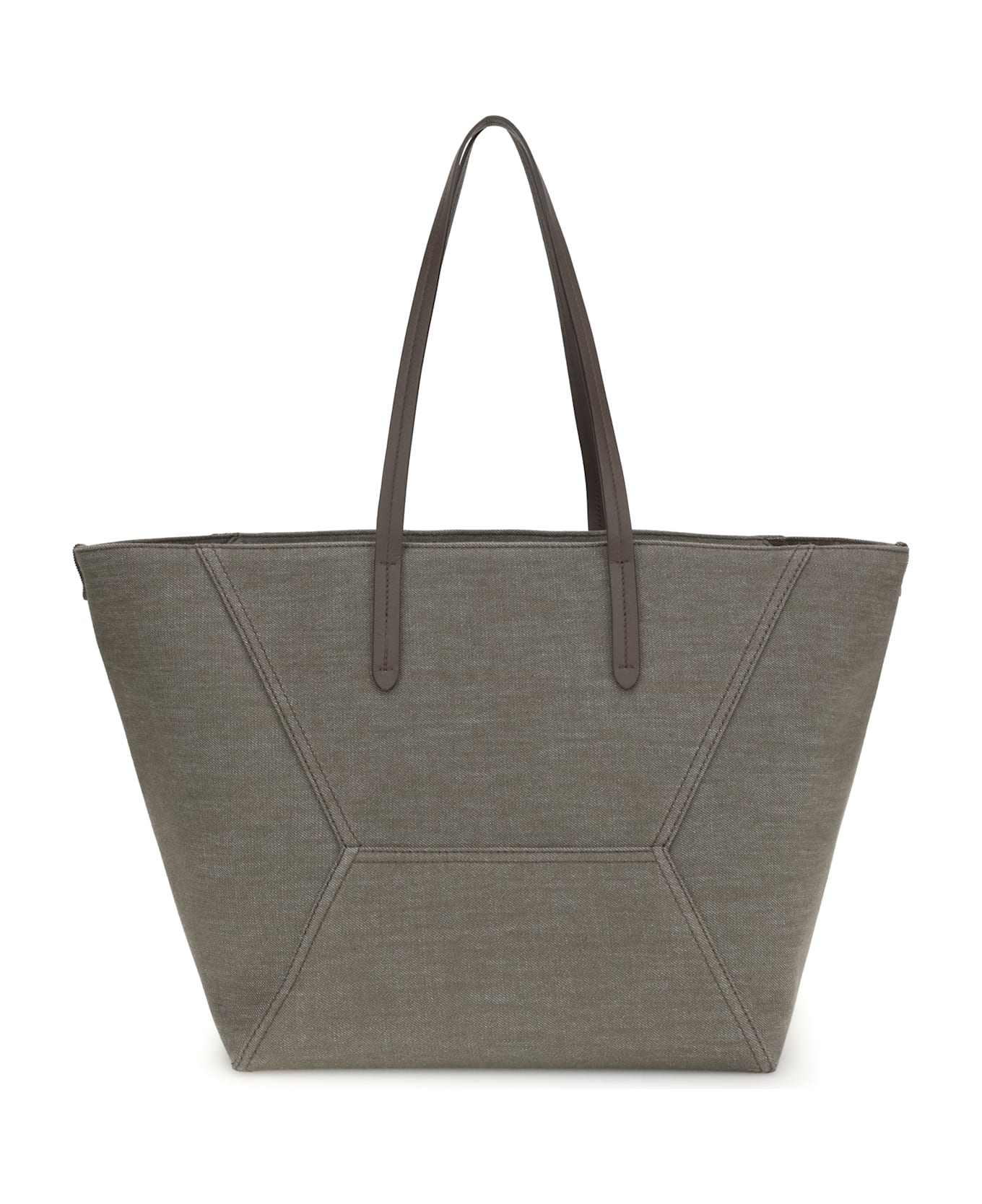The canvas bc tote bag by brunello cucinelli is an elegant and functional accessory featuring a zip closure, double handles, and a removable internal pouch with zip. embellished with a refined nickel-free metal decoration, it combines practicality and style, making it perfect for adding a touch of class to everyday looks.