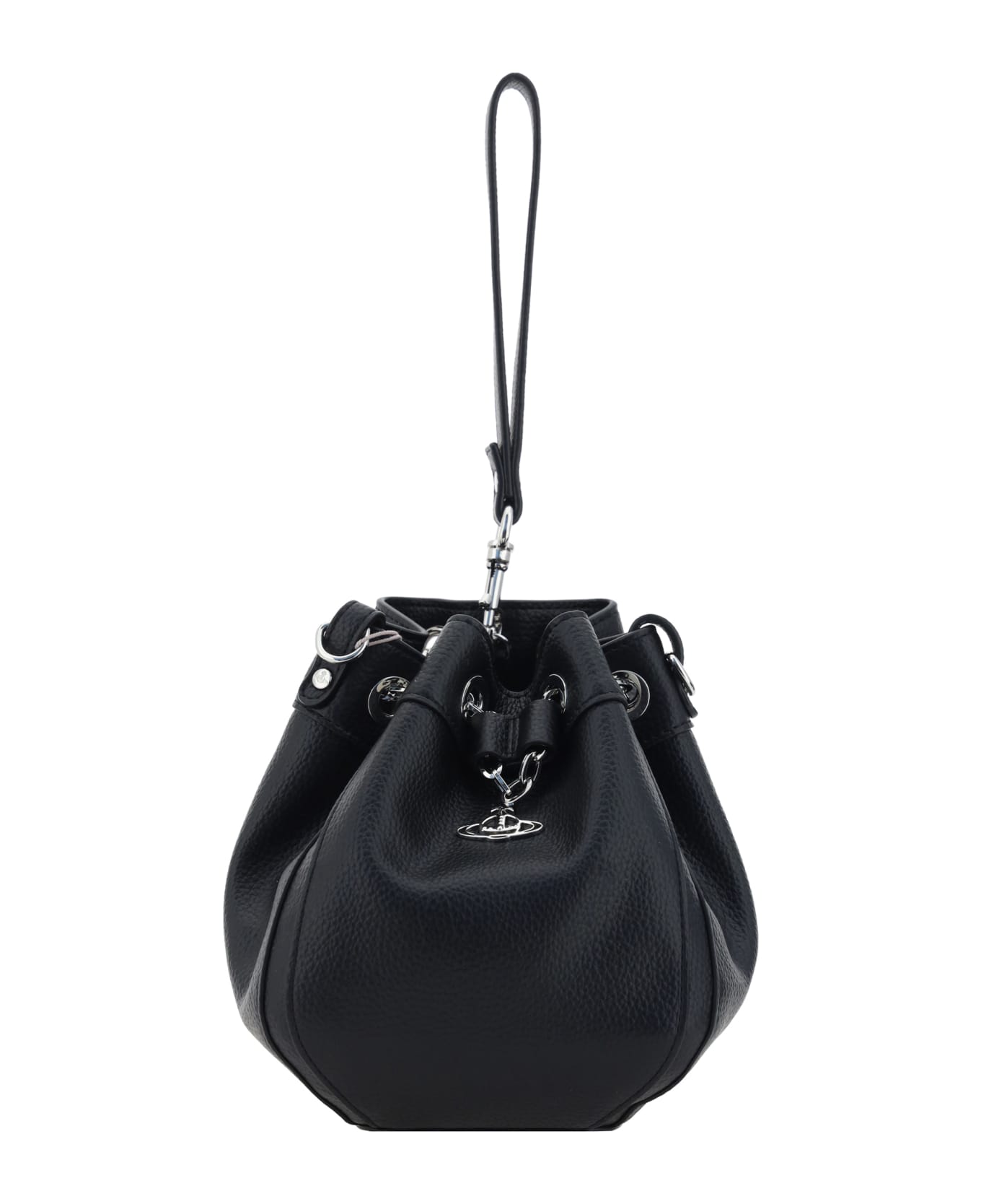 Chrissy small bucket bag by vivienne westwood, leather drawstring top closure, removable single flat top handle, adjustable and removable shoulder strap, single lined interior compartment, iconic brand logo applique on front. Composition: 100% % Polyurethane