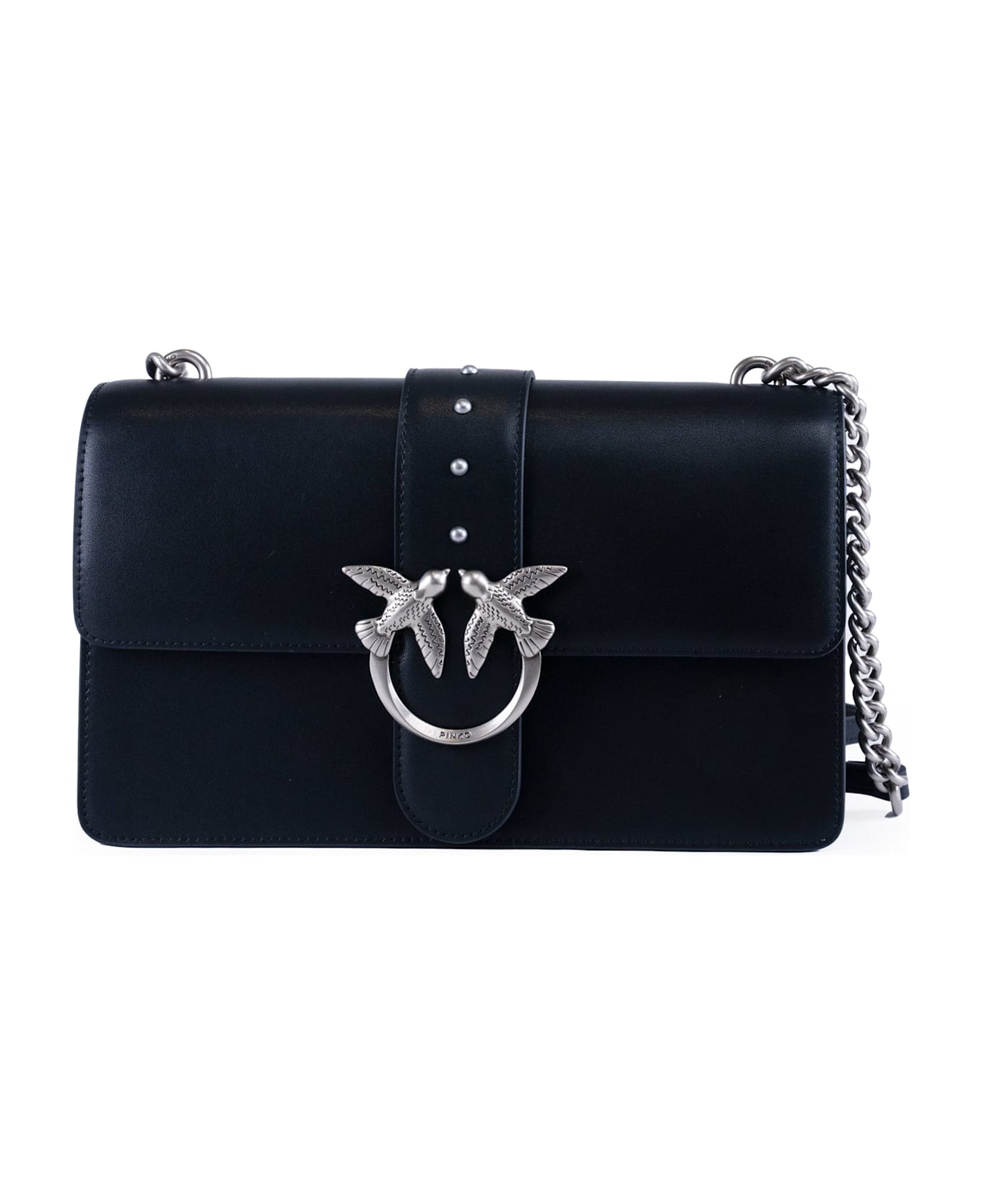 women's leather shoulder bag: smooth skin love birds metal buckle closure internal pocket internal compartment closed with zip interior lined in suede fabric fixed metal shoulder strap and adjustable leather shoulder strap studs on the front love birds embroidery on the back cow leather composition: main fabric: 92% cow leather, 8% polyurethane lining: 50% polyamide. 50% polyurethane