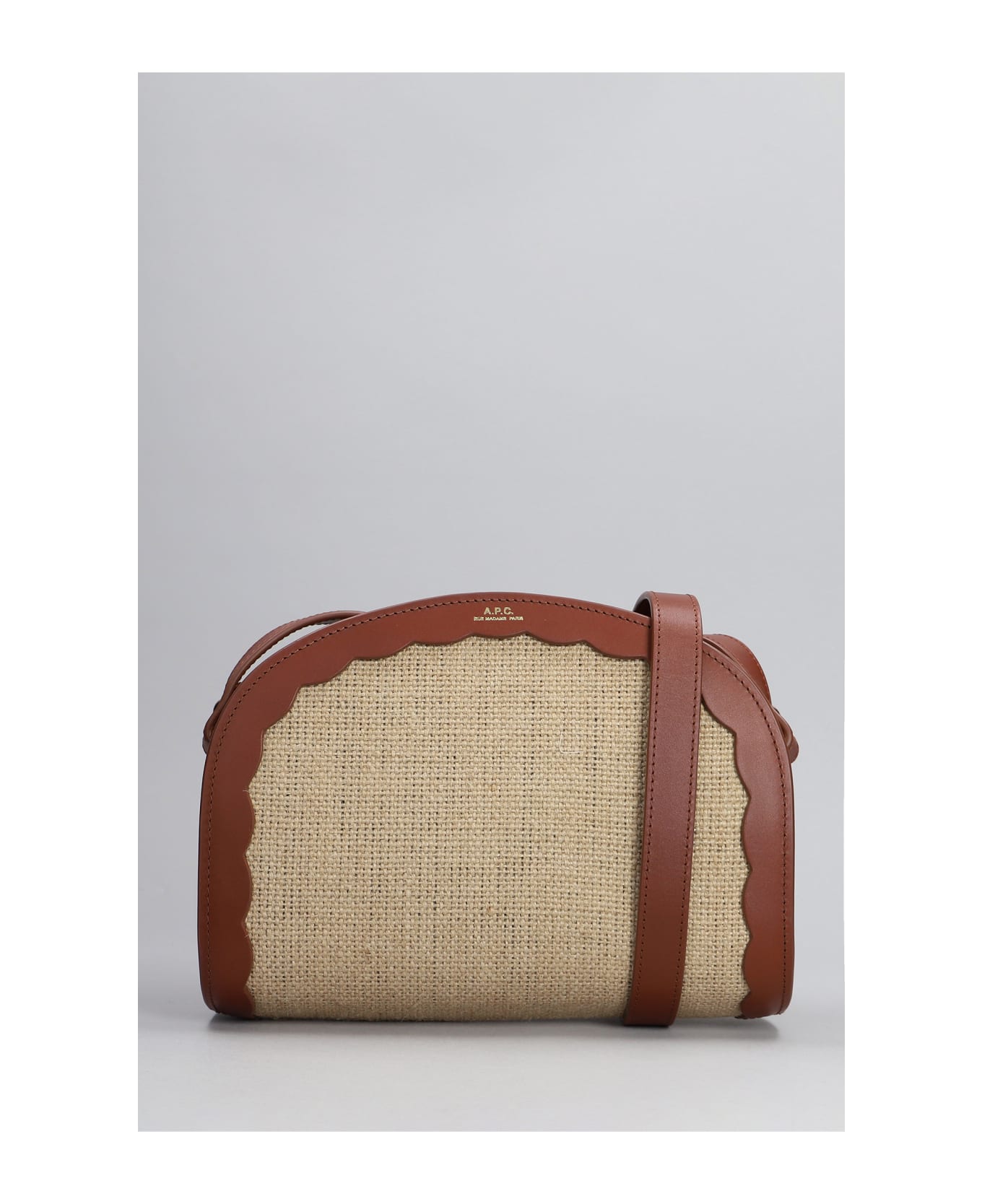Demi lune Shoulder bag in beige Jute, shoulder strap, zip clousure, leather detail, 100% juta, Made in Morocco, Height 170 mm, Width 240 mm