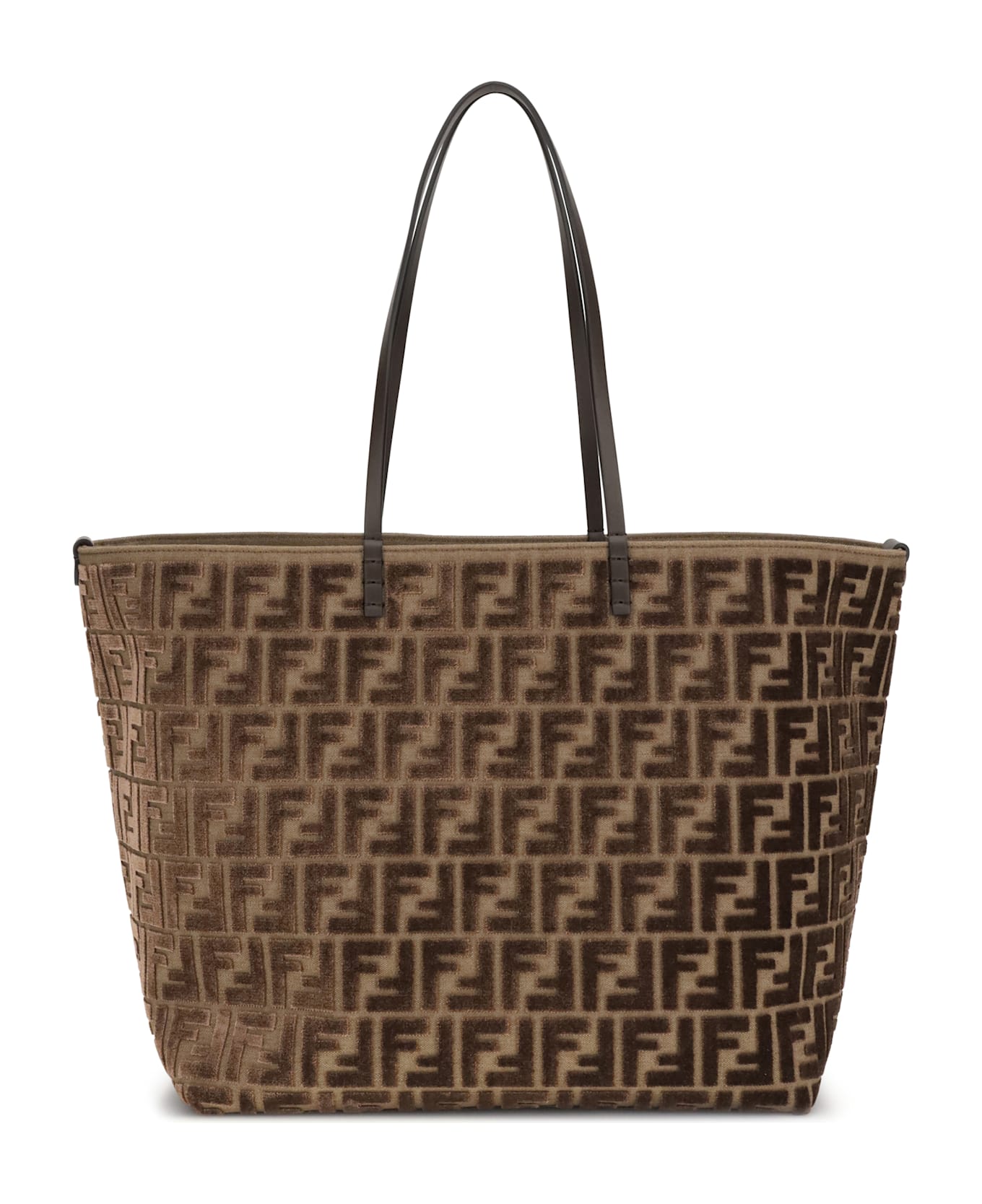 Tote bag by fendi is made with the iconic ff all-over printed chenille pattern, creating a luxurious and sophisticated effect. featuring two flat leather handles, this bag combines practicality and elegance. the interior features a single compartment, ideal for simple yet functional organization. the minimalist design and quality materials make this tote a versatile and distinctive accessory, perfect for those seeking a touch of everyday class.