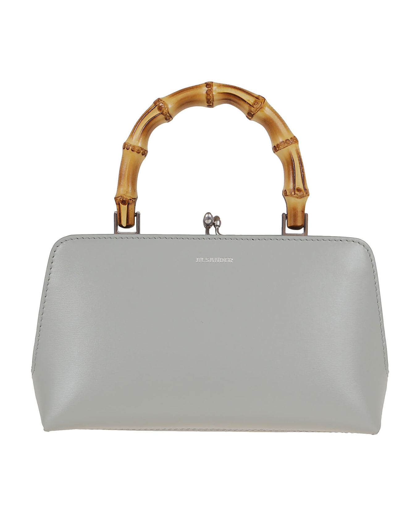 Mini Goji Bamboo handbag BY JIL SANDER. Rectangular shape with metal frame and pochette closure; inside pocket with zip. Bamboo top handle. Embossed Jil Sander logo detail.