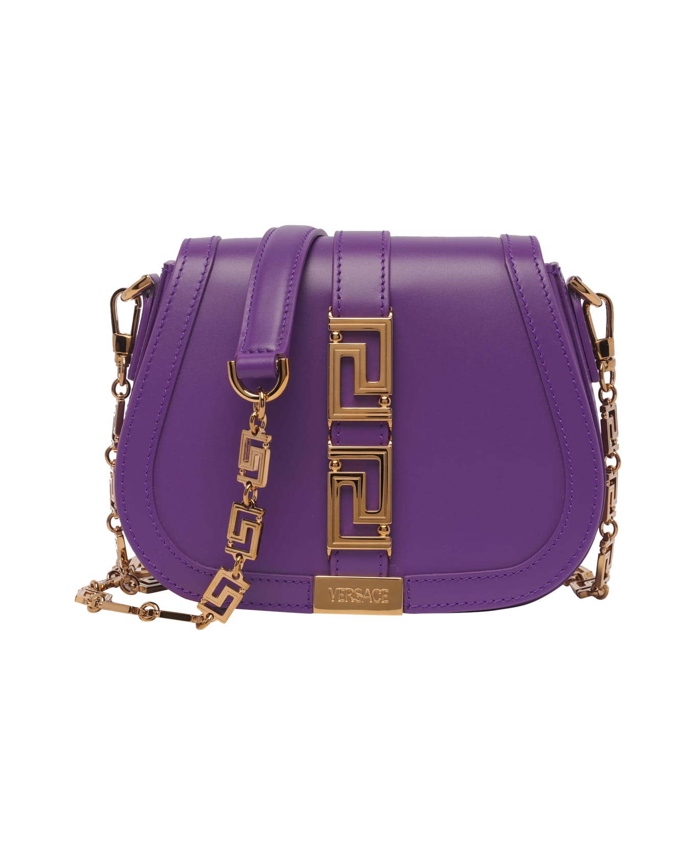 Versace Greca purple Goddess small shoulder bag, magnetic closure, 3 slots and opan pocket, removable and adaptable leather strap, removable chain strap Composition: 100% Calf Leather