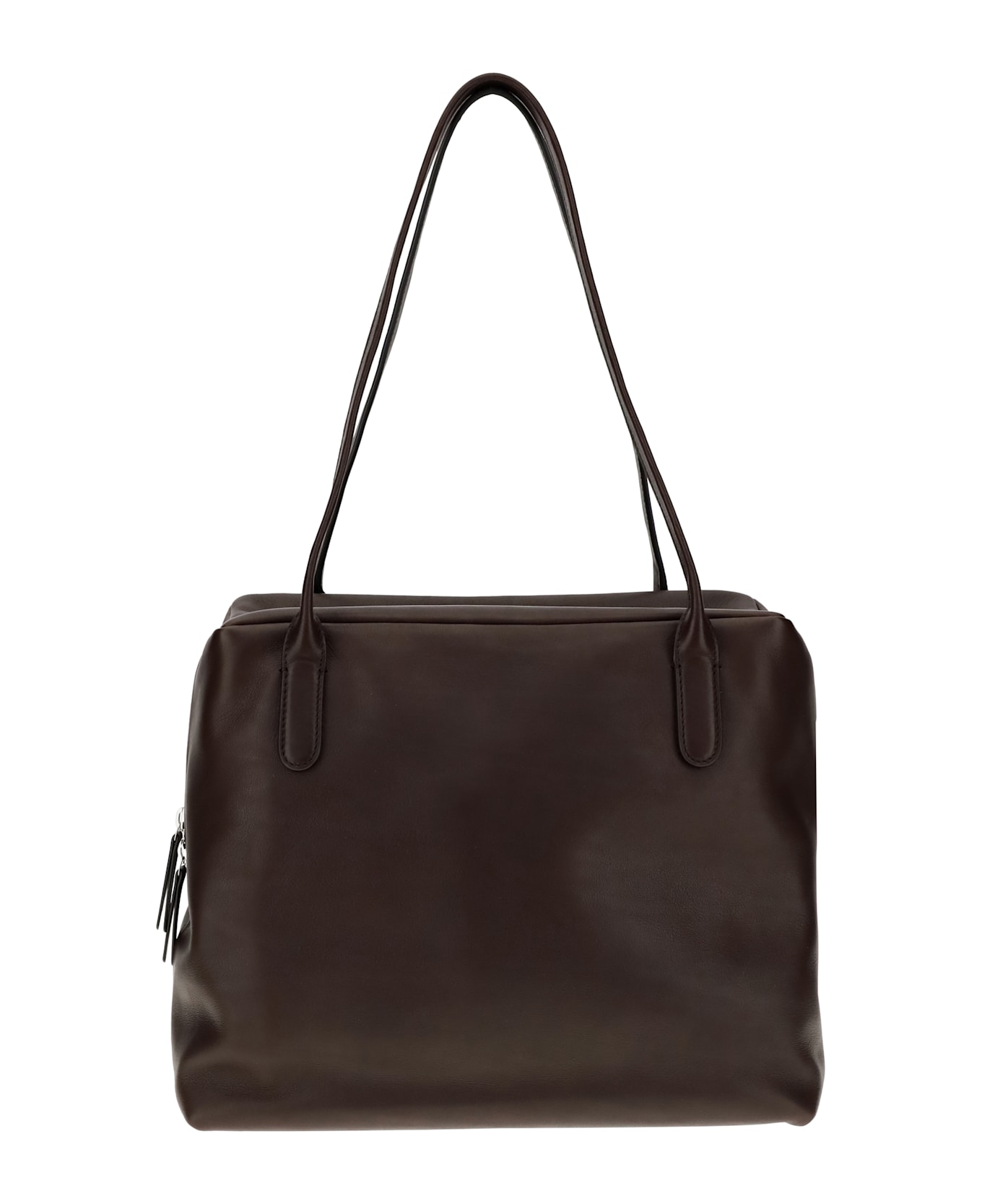 The henri shoulder bag by the row stands out for its square, clean design, emblematic of the brand's minimalist aesthetic. featuring two top handles and a zippered closure, it combines essential elegance and everyday practicality in a discreet yet sophisticated accessory.