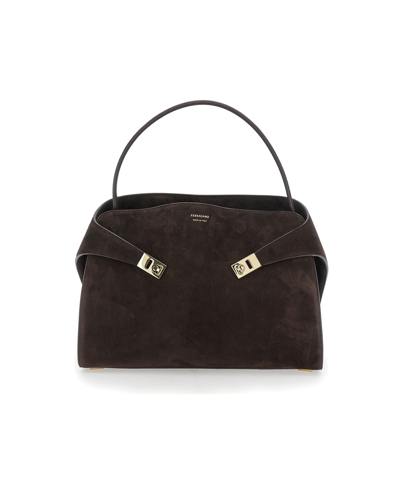 Shoulder bag Brown Single top handle Swivel closure with Gancini Printed logo on the front Divided compartment Internal zip pocket Internal card slots Metal feet Gold-colored metalware Suede Dimensions: 40x30. 5x17 cm Handle drop: 16. 5 cm Composition: 100% Goat