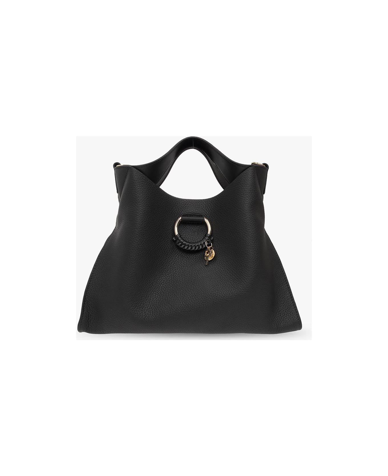 Black 'Joan Small' shoulder bag from See By Chloé. Made of leather, this model features a magnetic snap, decorative ring with braided leather and logo-embossed charms, two handles, detachable and adjustable shoulder strap in black, gold-tone metal hardwar