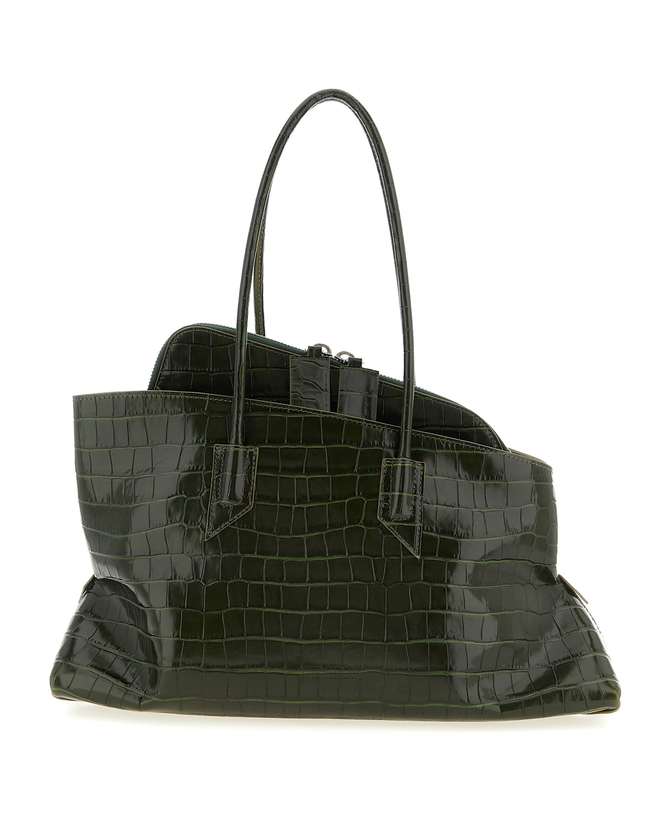 'La Passeggiata Medium' crocodile-print leather shoulder bag with front embossed logo, double fixed tubular handle, top zip closure, side pockets, rigid base with metal logo feet. Composition: 100% calfskin leather (Bos Taurus)
