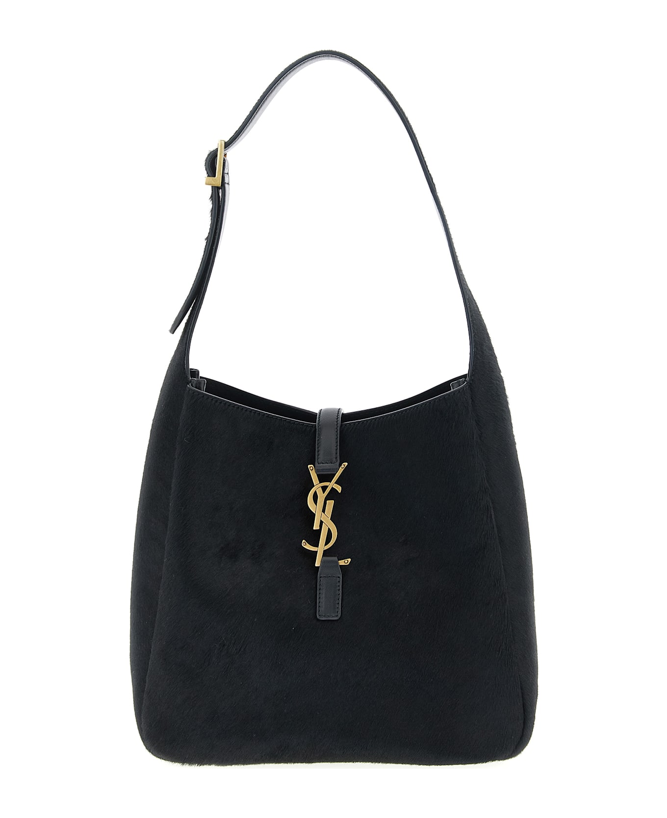 Small 'Le 5 à 7' shoulder bag in pony-effect leather and smooth leather, tone-on-tone suede lining, adjustable handle, and interlocking antiqued metallic Cassandre logo closure.