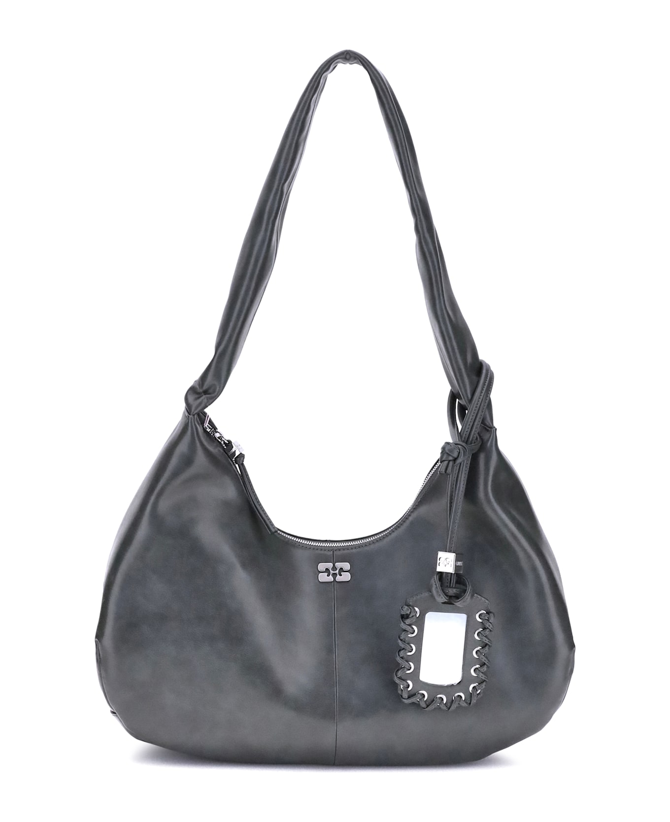 Ganni's medium hobo shoulder bag is an accessory with a contemporary and functional style. equipped with a flat shoulder strap that ensures comfort during daily use, it features a top zipper closure that ensures practicality and security. an applied logo tag stands out at the base, while on the front a plaque with the brand's iconic logo adds a distinctive touch. essential and versatile, it is perfect for completing urban and casual looks with character.