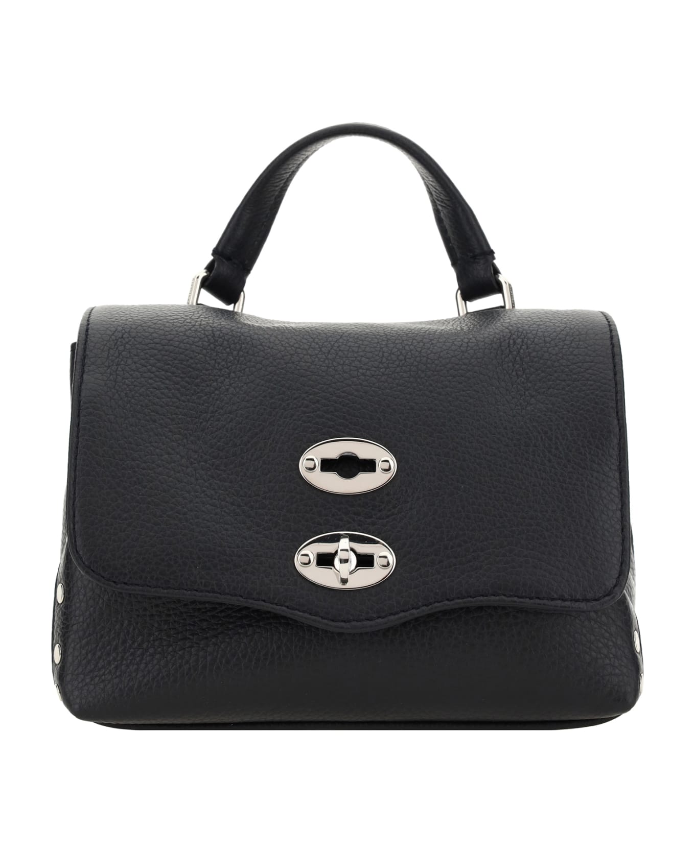 The leather postina daily shoulder bag by zanellato is an icon of functional elegance and italian craftsmanship. made of grained leather, it is distinguished by its soft, structured design enhanced by refined contrasting metallic studs. featuring a short leather handle and an adjustable, removable shoulder strap, it offers versatility of use. the front hook-and-eye closure adds a classic touch, while the interior, with a single compartment and flat zippered pocket, provides practicality and order.