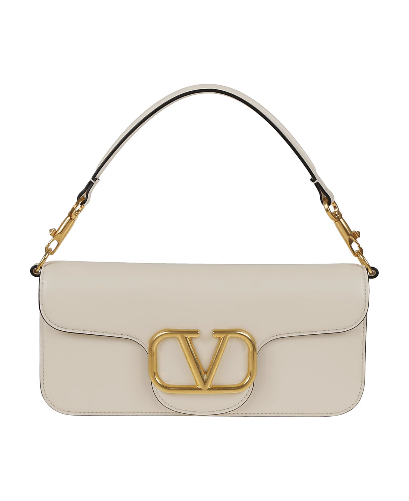 Locò shoulder bag in calfskin BY VALENTINO GARAVANI. Magnetic closure; a flat pocket inside. Characterized by VLogo Signature on the front, antiqued brass color like the other metal parts. Ideal to be worn both on the shoulder/cross-body thanks to the sliding and removable chain; or by hand thanks to the handle which is also removable.