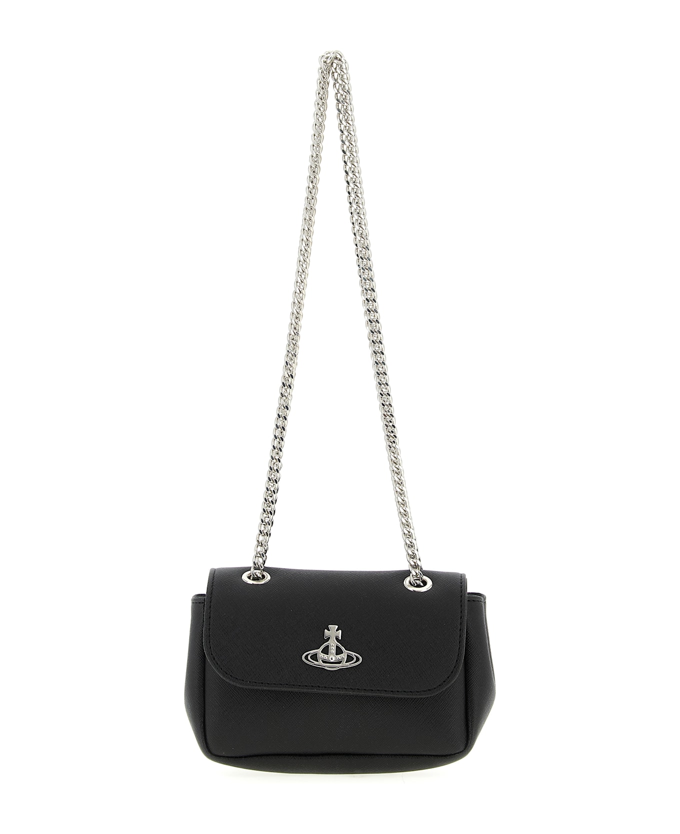 'Small Purse Chain' shoulder bag in Saffiano leather-effect fabric, magnetic flap closure with metal Orb logo on the front, cotton lining, sliding chain shoulder strap. Composition: 65% polyurethane, 35% cotton