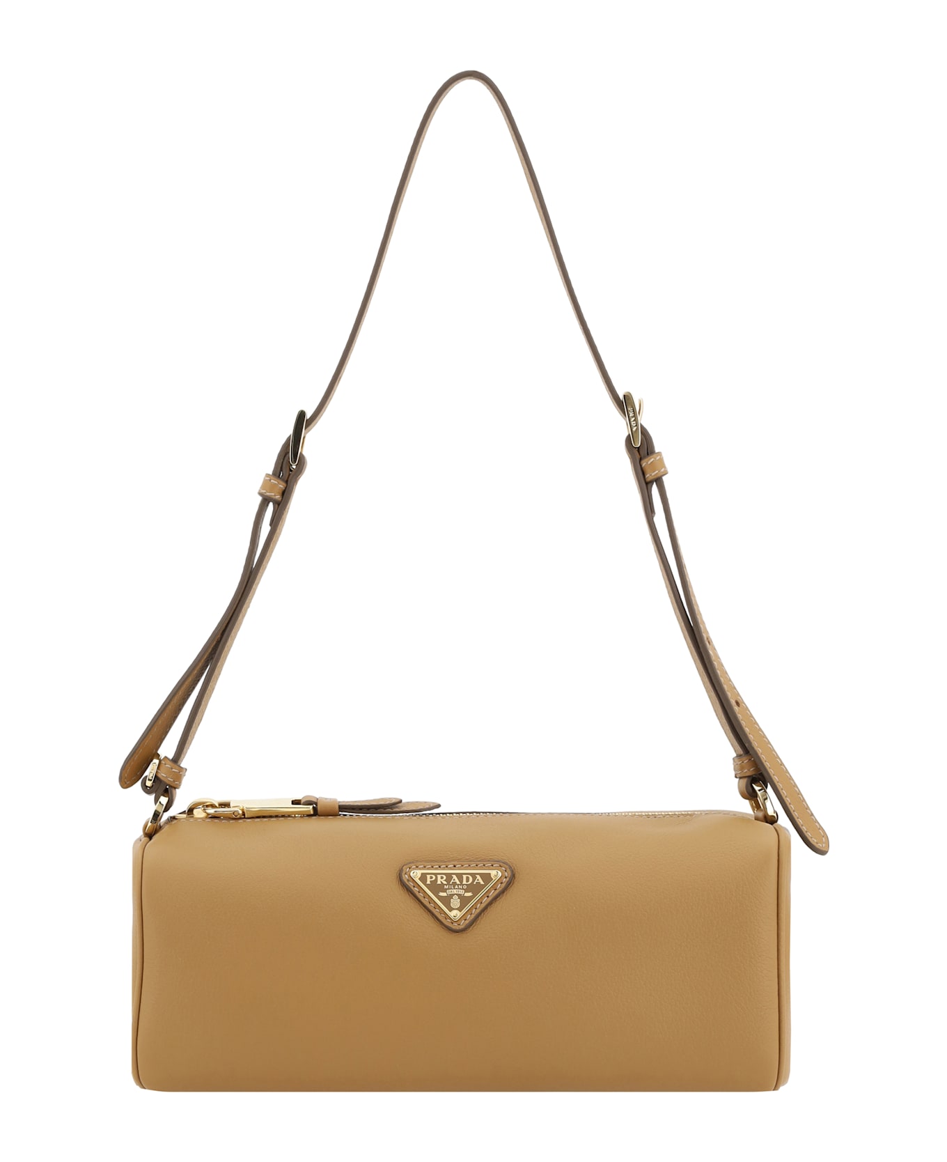 Prada's leather shoulder bag is an elegant and versatile accessory, ideal for completing any look with a touch of understated luxury. the grained leather design lends a refined and durable texture, while the adjustable flat shoulder strap allows you to easily adjust it to your desired length for maximum comfort. the zippered closure at the top provides security and convenience, while the iconic enameled triangular brand signature plaque applied to the front adds a distinctive and recognizable detail. inside, a single compartment offers enough space to hold essentials. Composition: 100% % Calf Leather Bos Taurus