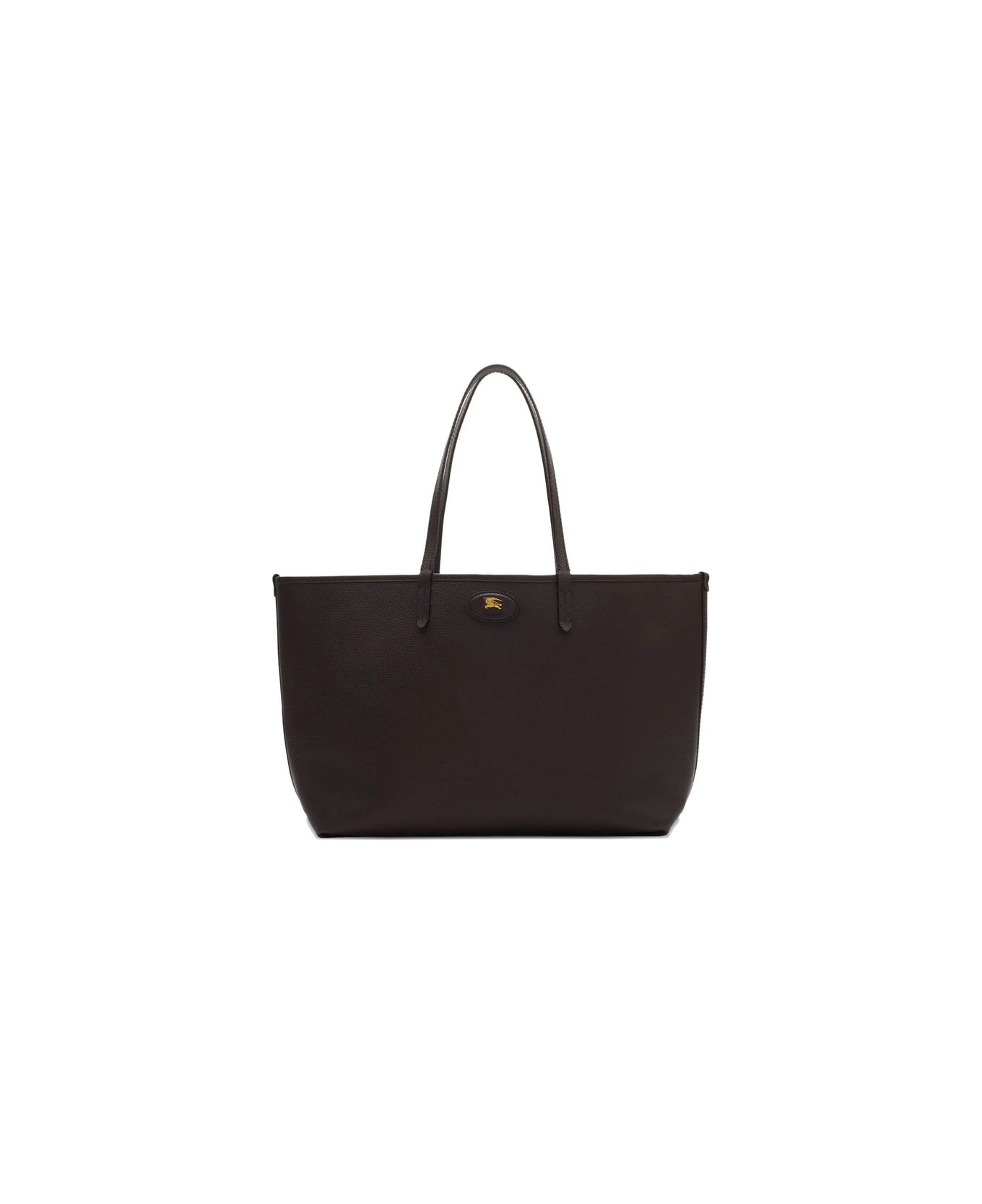 dark brown check-pattern reverse top handles detachable pouch hand-painted edges patch with logo detail calf leather