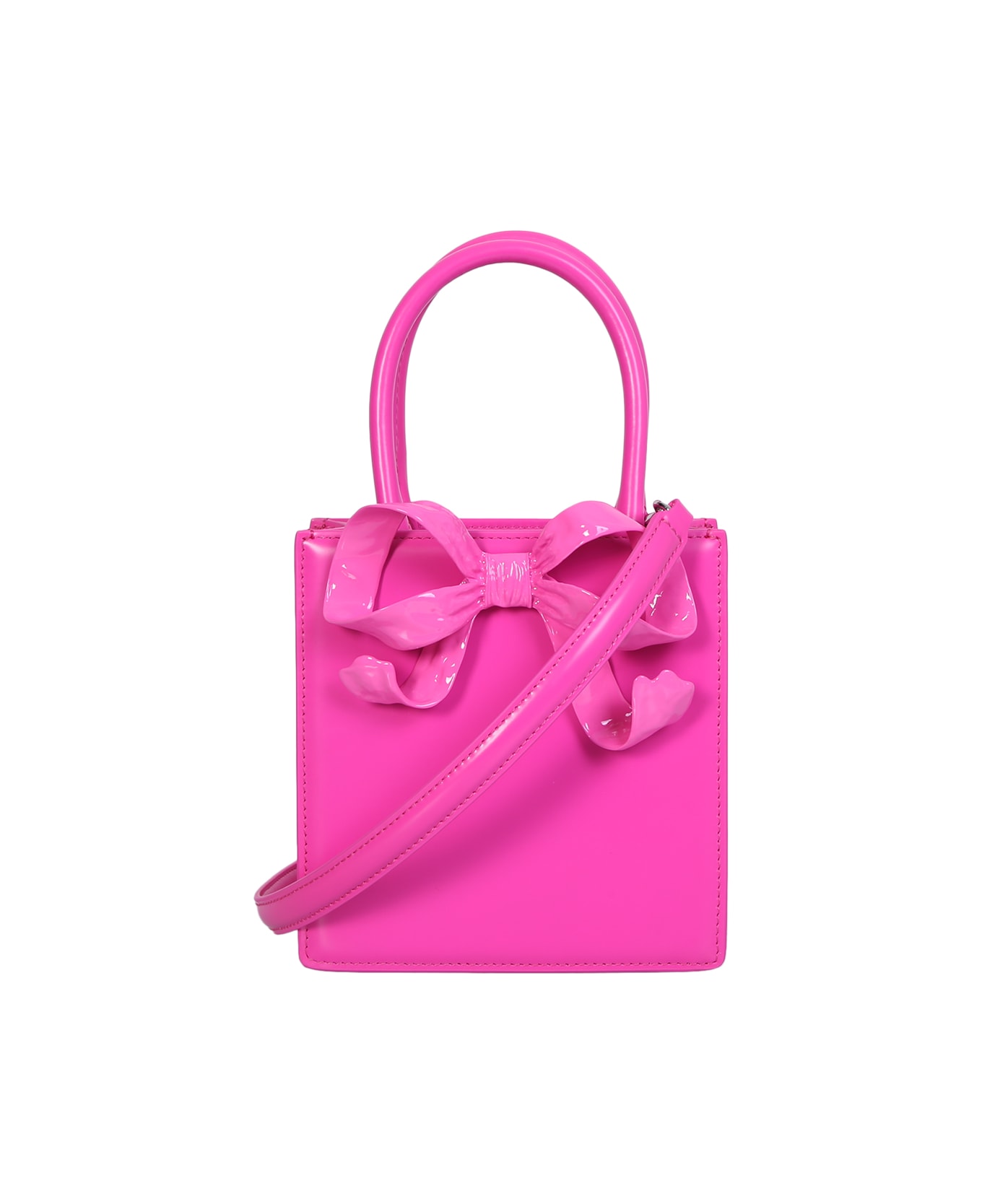 Open top. Main compartment. Internal slip pocket. Internal logo. Two top handle. Adjustable detachable shoulder strap. Bow detailing. Tone on tone design. Color: neon pink