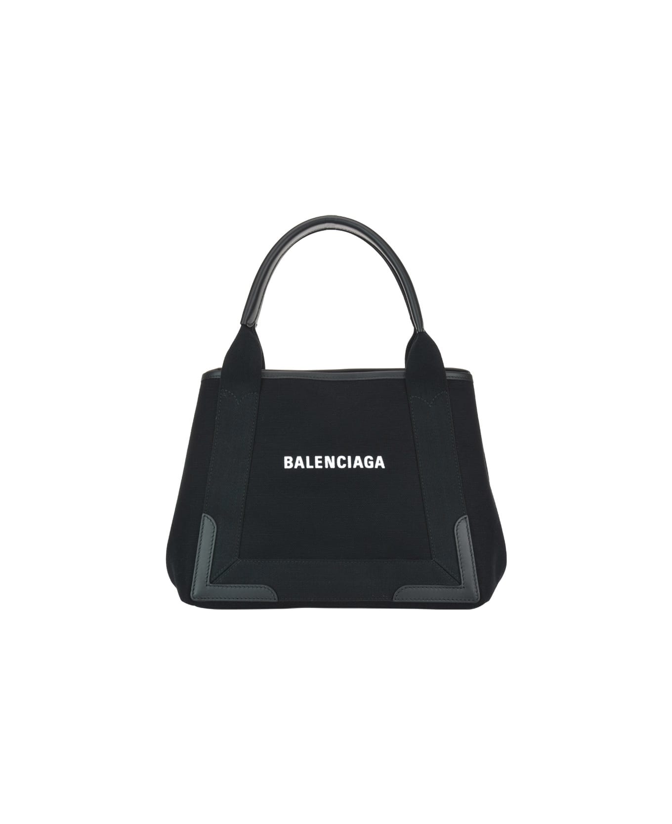 Balenciaga black Cabas handbag, frontal logo, internal clutch, double handle, black Composition: 100% Fabric, 100% Calf Leather