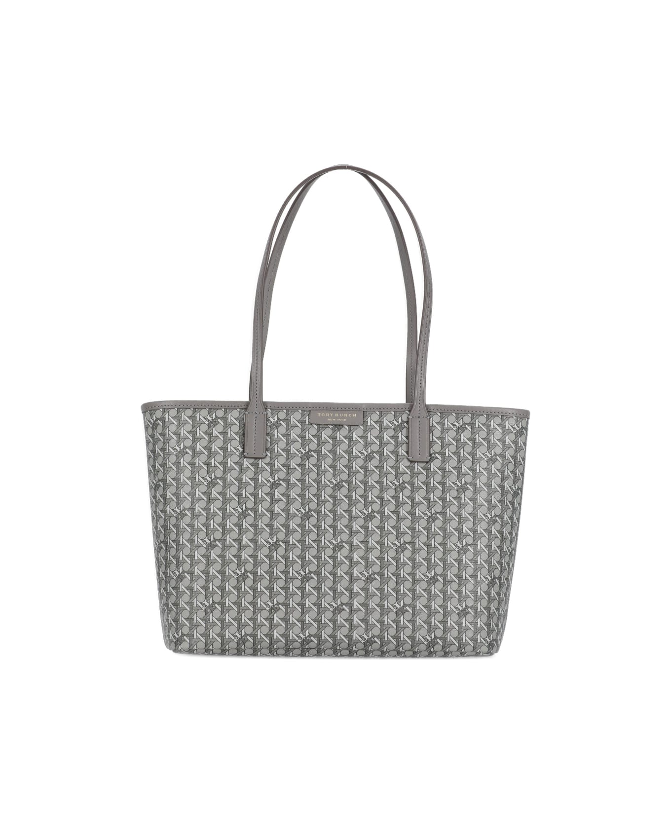 - Tory Burch grey woman's shopping bag - Two handles - Front loged tab - All-over braided pattern - One main compartment with zip fastening - Removable matching pochette included - One interior zip pocket