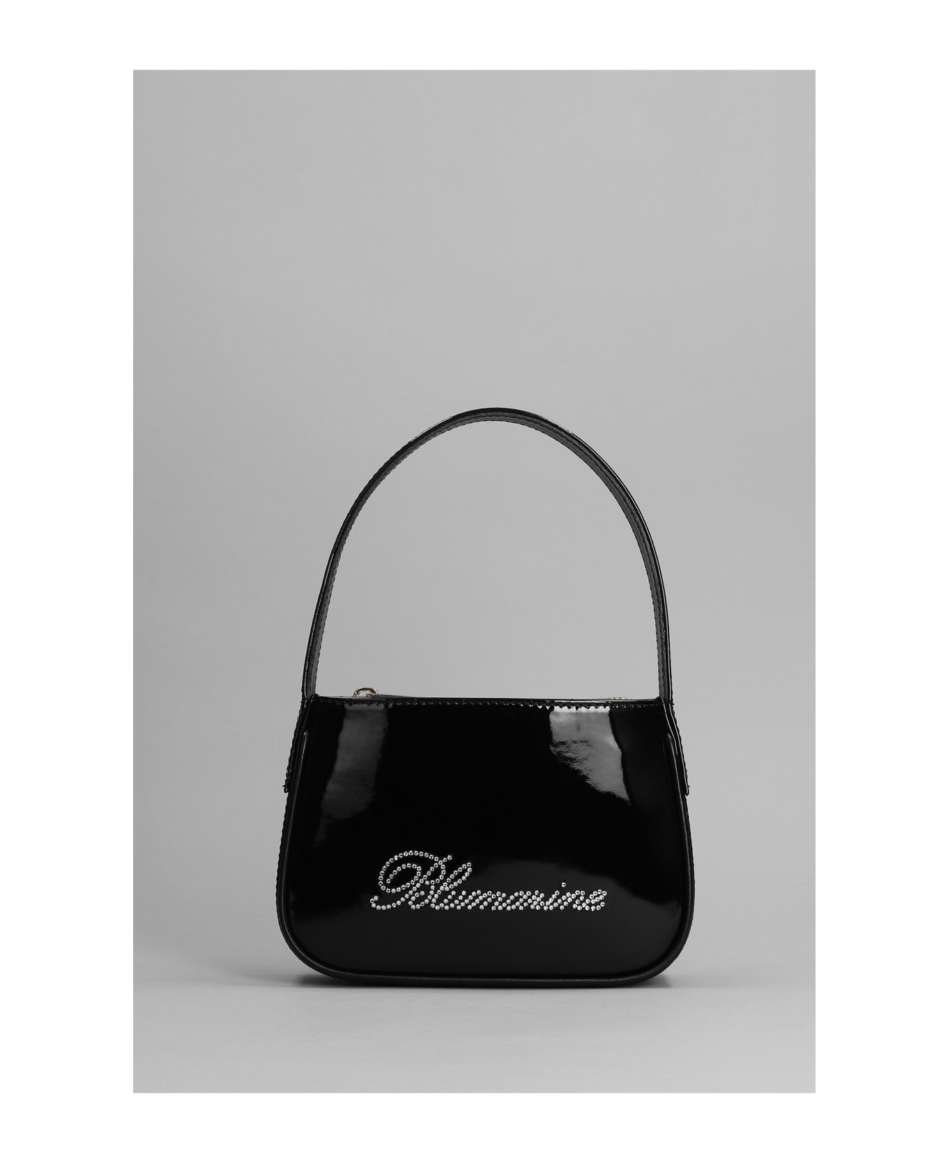 Hand bag in black patent leather, Height 135 mm, Width 190 mm, Height 135 mm, handle, zip clousure, crystals detail, patent leather, Made in Italy
