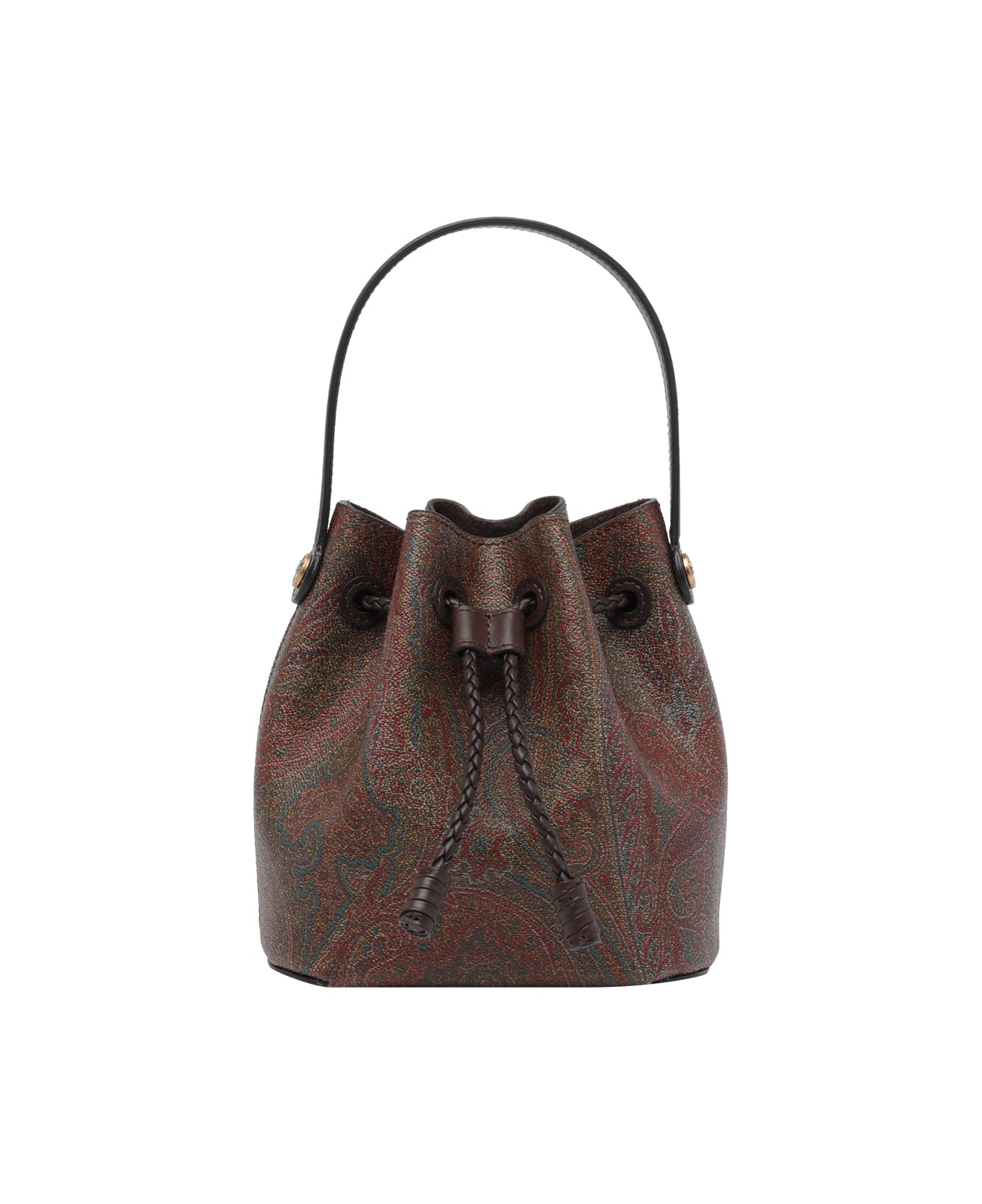 Etro brown Mini Arnica bucket bag, coulisse closure, 1 strap, adaptable and removable strap, paisley print Composition: 76% Cotton, 24% Polyester, Leather Trim