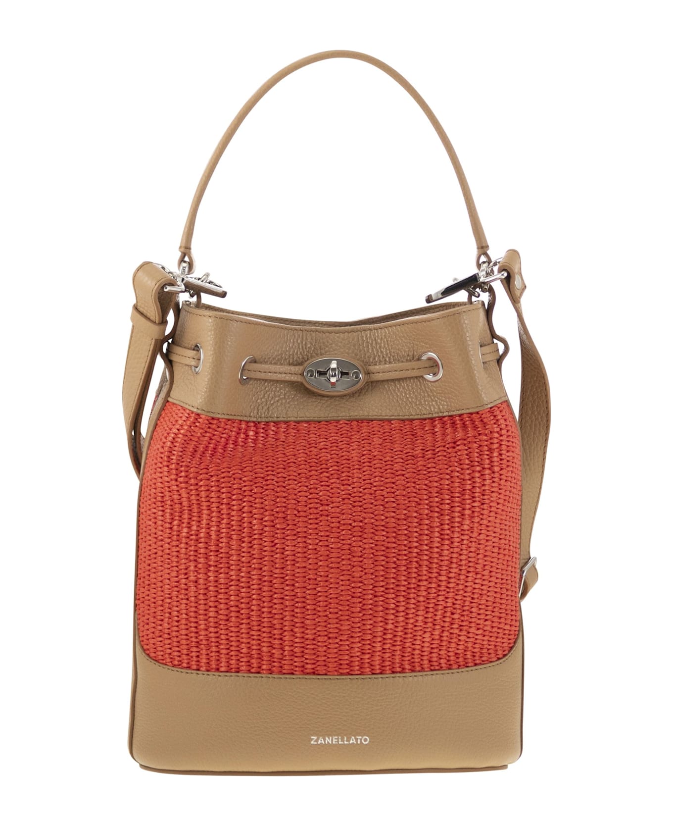 Mondà'®, a tribute to the mondarises of the Po delta. Zanellato reinterprets the basket used by the mondariso in a modern key, adding a typically Italian retro touch. Mondà® basket with adjustable shoulder strap, can be worn on the shoulder, by hand or over the shoulder. A careful selection of hides from Italian tanneries, combined with secret details to achieve a very high finish and quality, are the characteristics that make Zanellato leather unique and unmistakable. Soft touch and intense fragrance are indispensable in each of our bags. Through continuous research into new materials and Franco Zanellato's great experience as a man in the workshop at the best tanning poles in Arzignano, Zanellato succeeds in obtaining leather of the highest quality: soft, silky and with a natural opacity. Each bag encompasses handcrafted workmanship with small but precious details: saccole and hand stitching, yoke finished with ribs and packaging strictly in certified Italian workshops. Each bag has a unique code inside to guarantee its originality and uniqueness. - Straw fabric - Adjustable shoulder strap - Leather details DESIGNER ID: 068980 2030000 Z0913-S