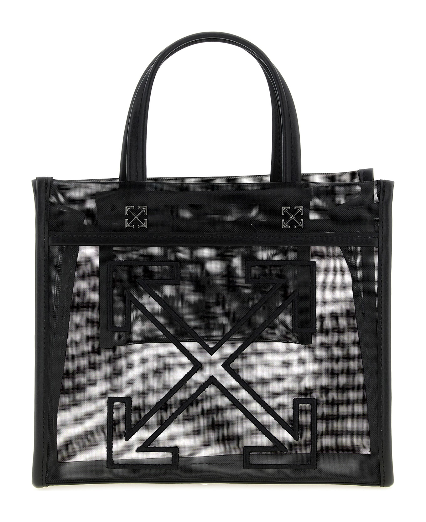Small 'Market' shopping bag in semi-transparent mesh and smooth leather, 'Iconic Front Arrow' tone-on-tone embroidery and front metal details, double fixed handle, inner pocket.
