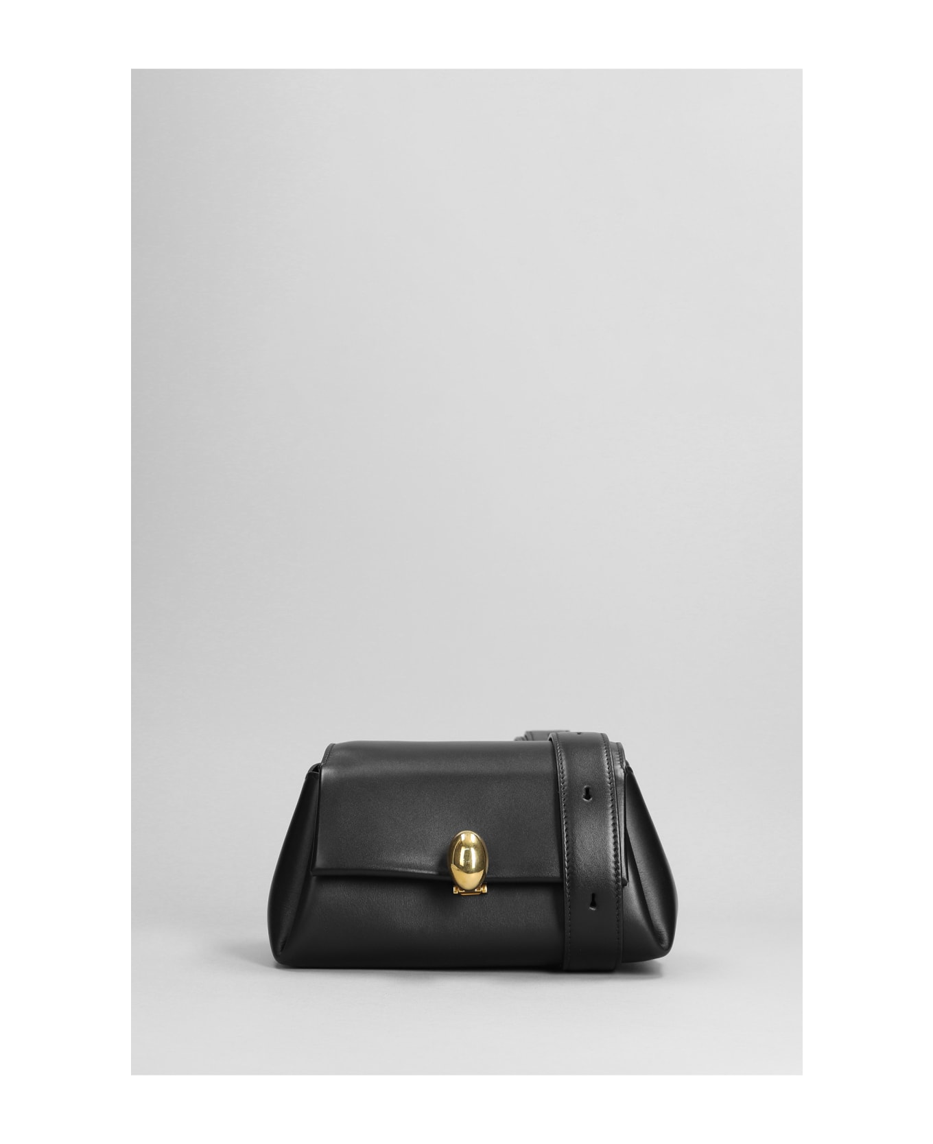 Smoote plain Hand bag in black leather, Height 105 mm, Width 195 mm, shoulder strap, gold hardware, push- lock fastening, 100% leather, Made in Italy