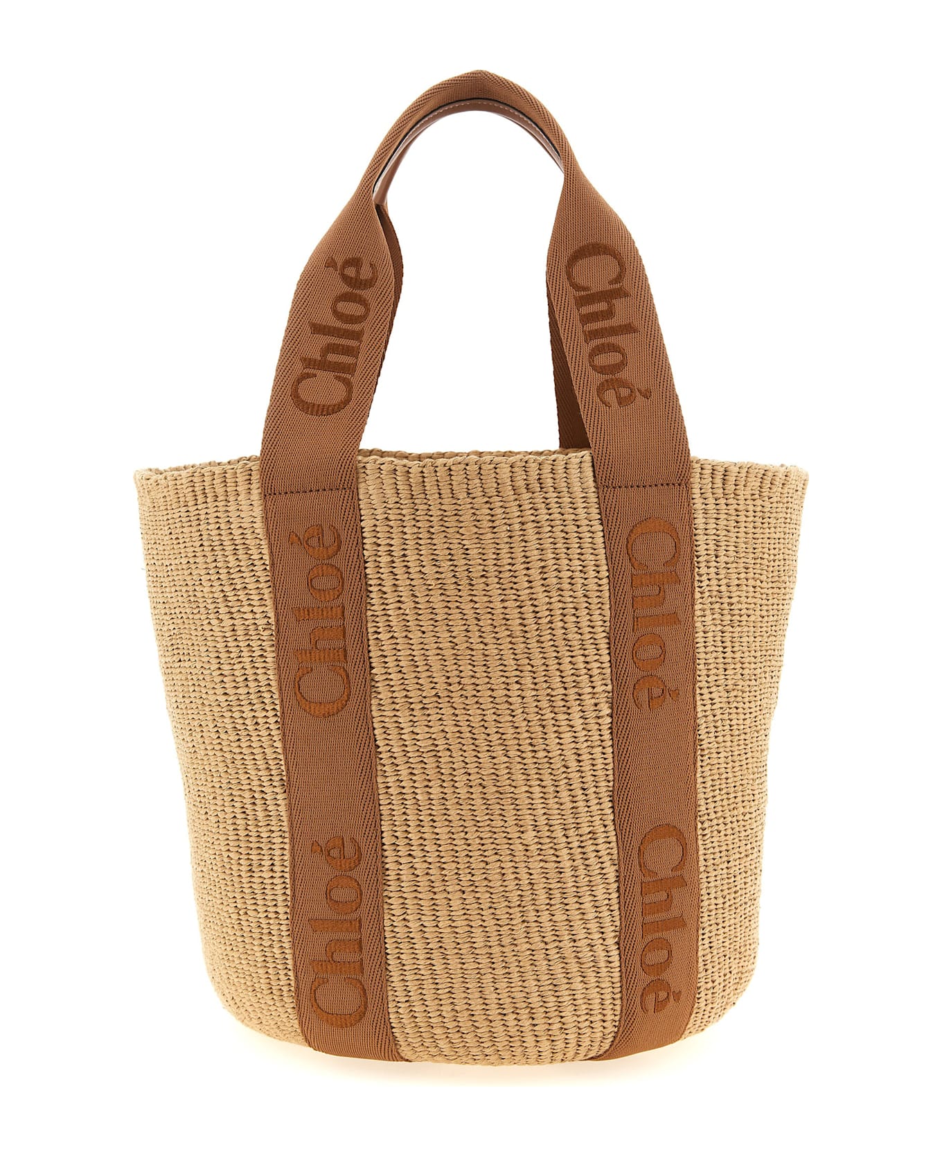 Large 'Woody' shopping bag handmade in fair trade paper by independent artisans in Kenya, double fixed handle in logo canvas, leather detail on the bottom of the bag. Handcrafted product, any imperfections are to be considered characteristics of uniqueness. Composition: 100% paper