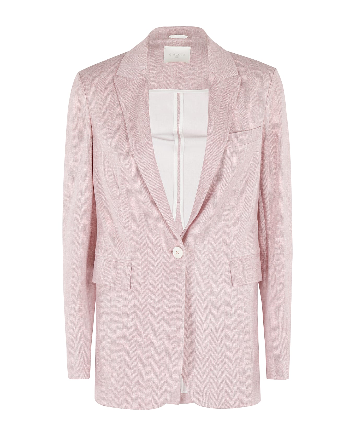 Blazer - Circle 1901 - Pink color - Herringbone cotton fleece fabric - Classic lapel neckline - Long sleeves with buttons at hem - Flap side pockets - Wired breast pocket - Single breast button closure - Regular fit
