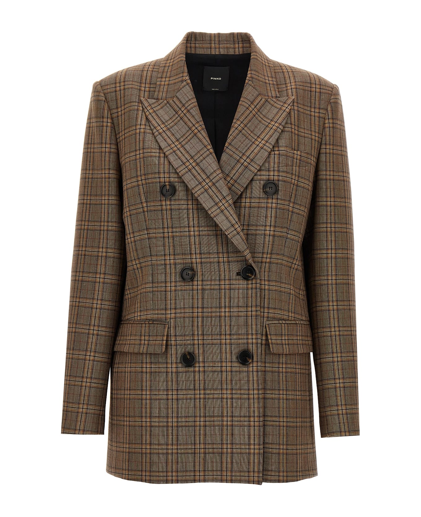 'New Guinea' double-breasted blazer in wool blend with check print, button closure, peak lapels, long sleeves, pockets, padded shoulders, lining.