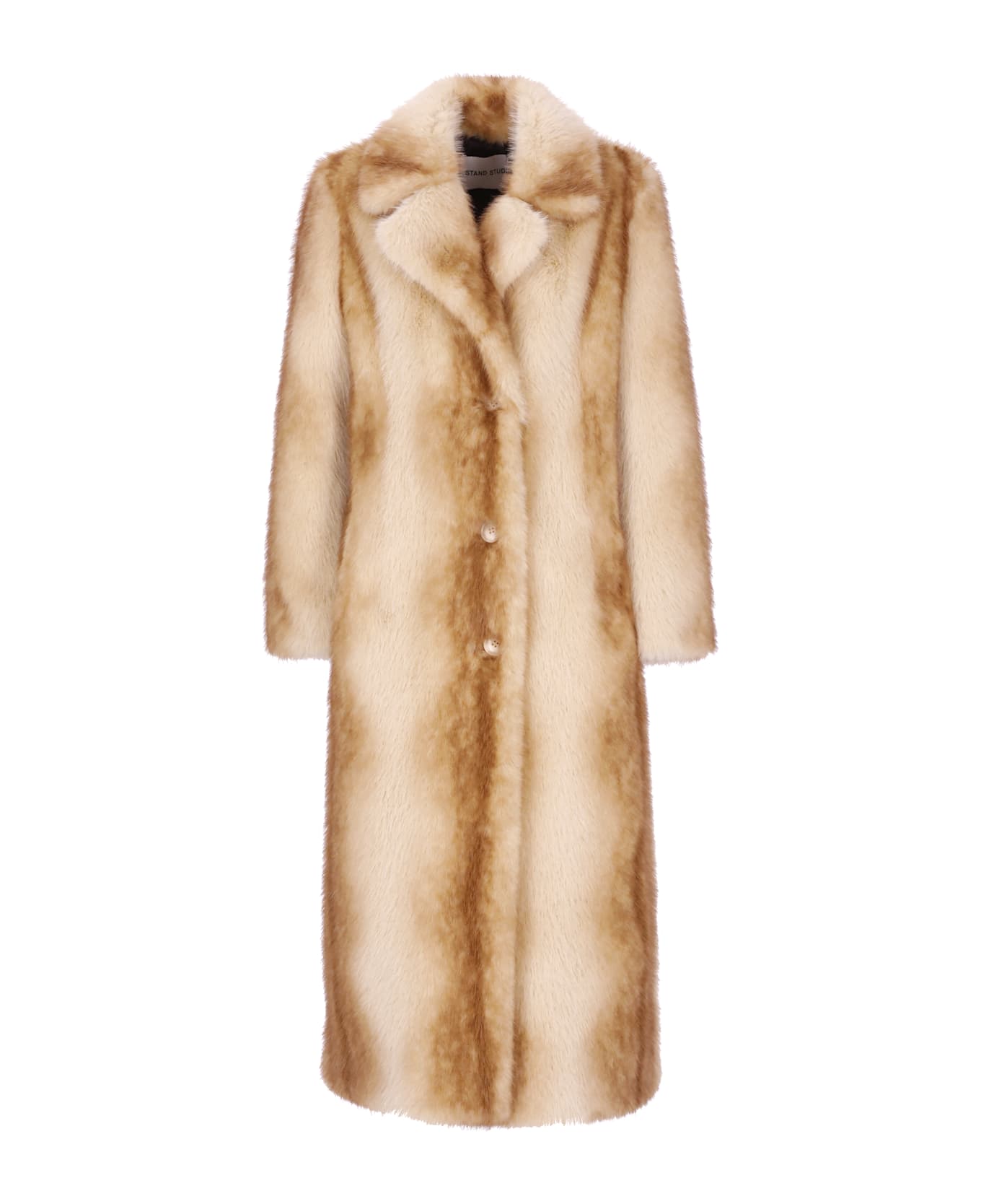 - Beige Stand Studio faux fur coat for woman - Round neckline - Long sleeves - Two side slit pockets - Front fastening with buttons