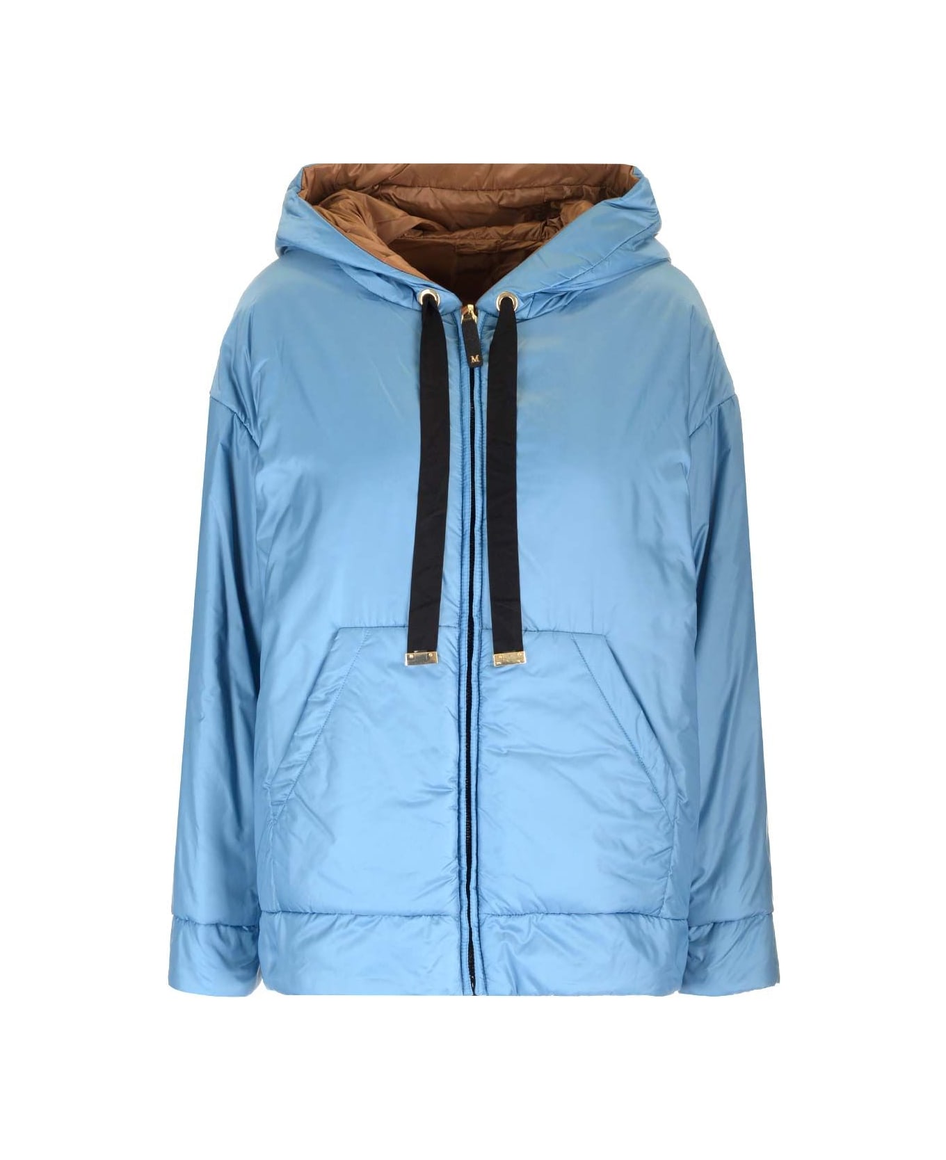 Max Mara The Cube jacket in Upcycling anti-drip technical canvas, with drawstring hood with personalized Max Mara jacquard ribbons and kangaroo pockets on the front. Zip closure and leather slider. The model is characterized by CameLuxe padding: a new frontier for upcycling processes that involves the recovery of surpluses deriving from the cutting of pure camel fabrics of our legendary coats. Composition: