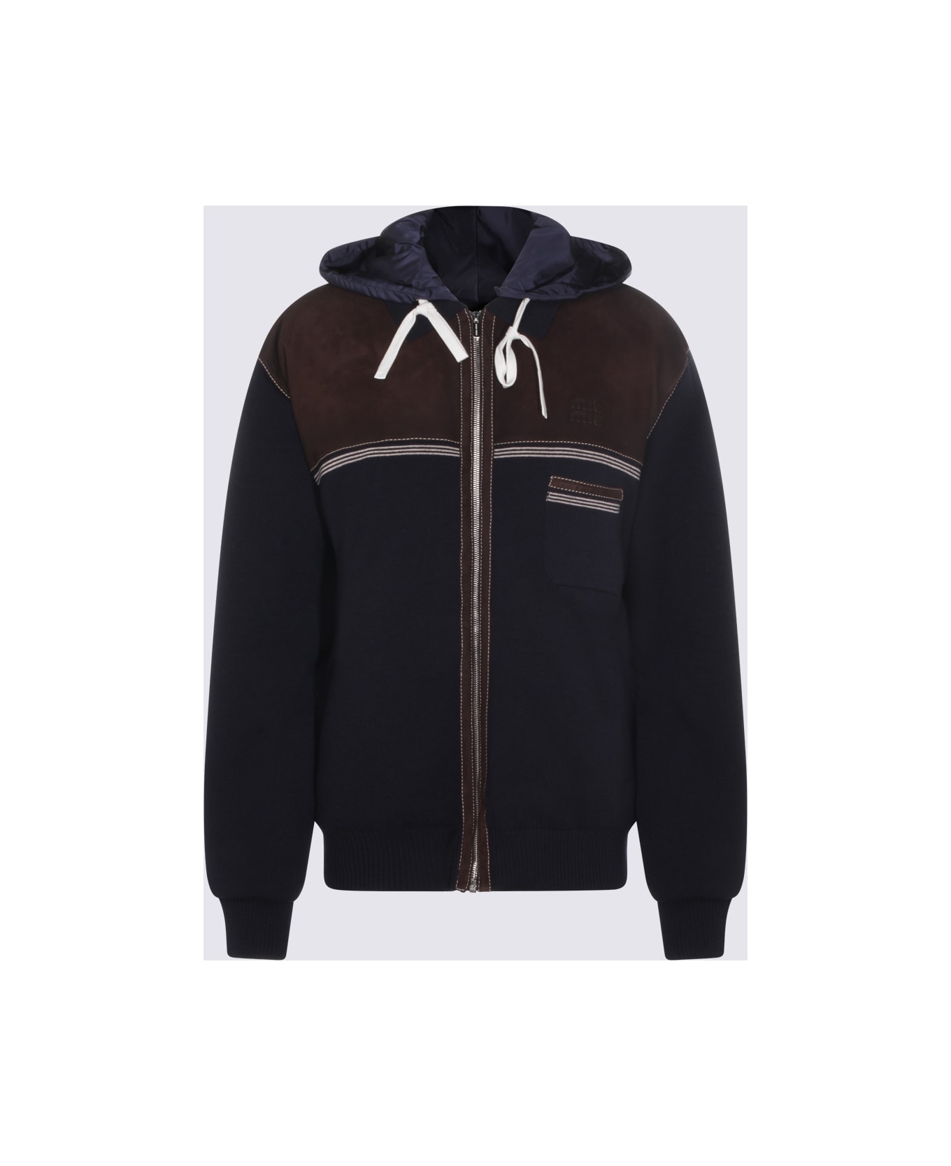 Blue cashmere down jacket from Miu Miu featuring hood, zip fastening, long sleeves, frontal logo, pockets and regular vestibility. Composition: _, 100% Virgin Wool