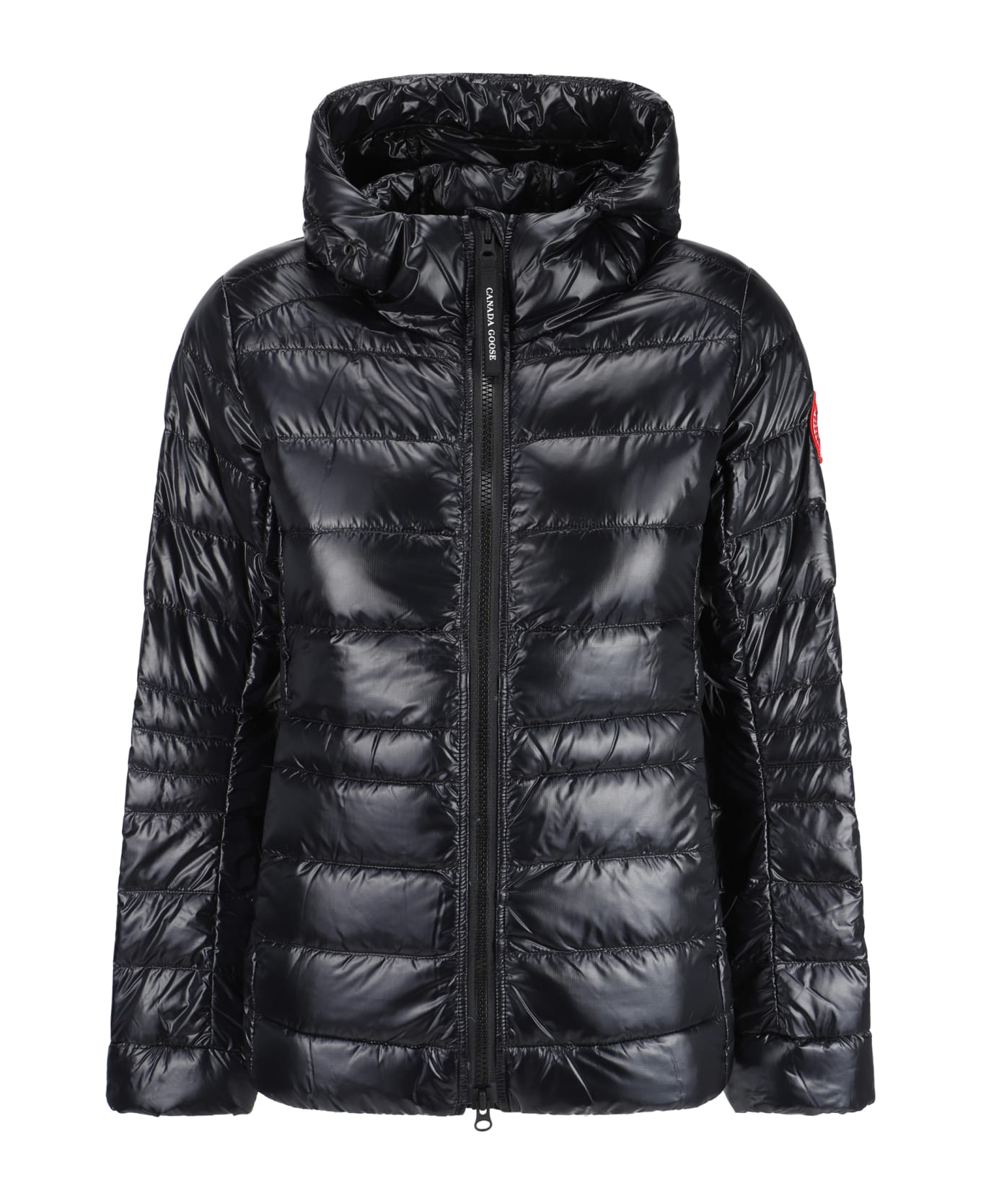 Down jacket by canada goose, high-necked, drawstring-adjustable hood model, front closure by double-slider zipper, two zippered welt pockets, power-stretch indented cuffs, all-over quilted and padded design, monochrome pattern, iconic brand logo patch applied to sleeve, regular fit. Composition: 100% % Nylon