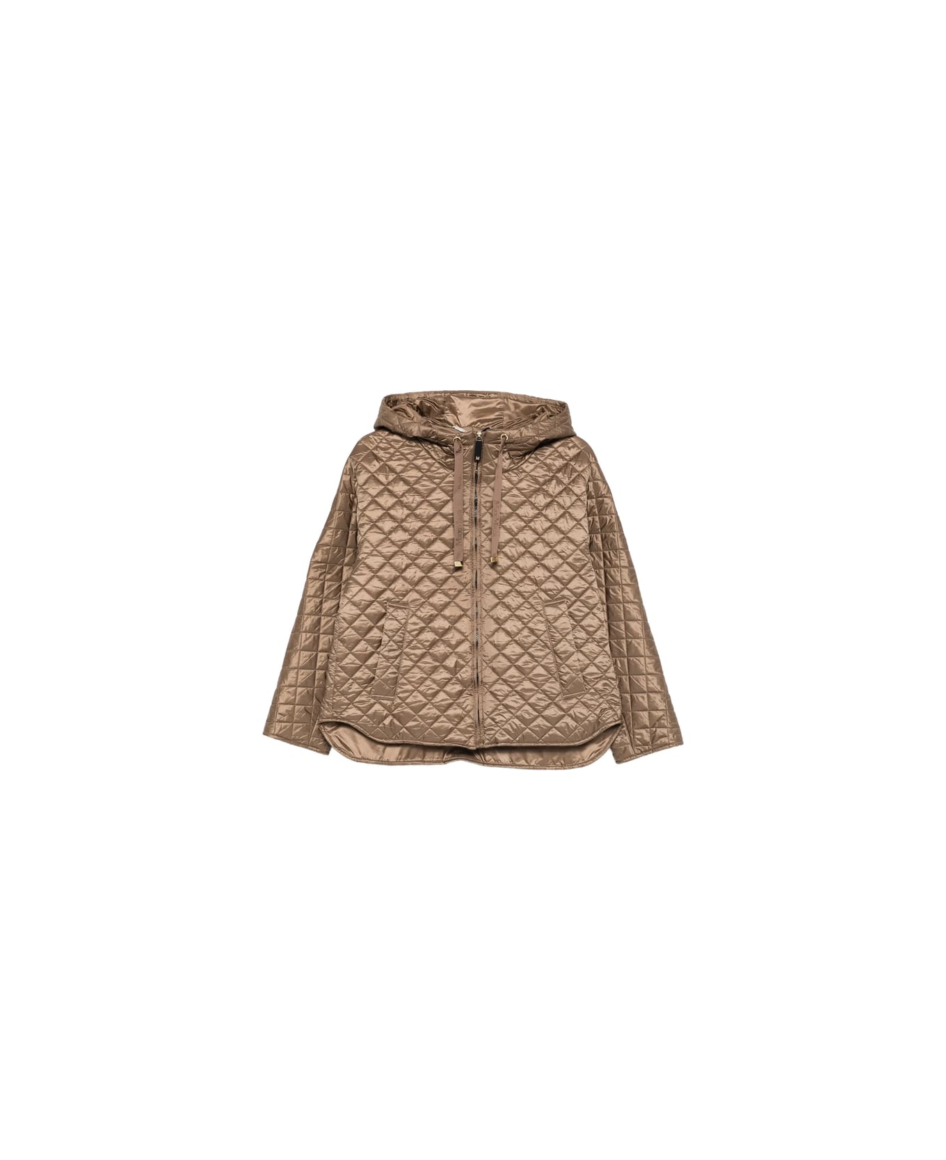 light brown quilted design hood front zip fastening slip pockets drawstring hood